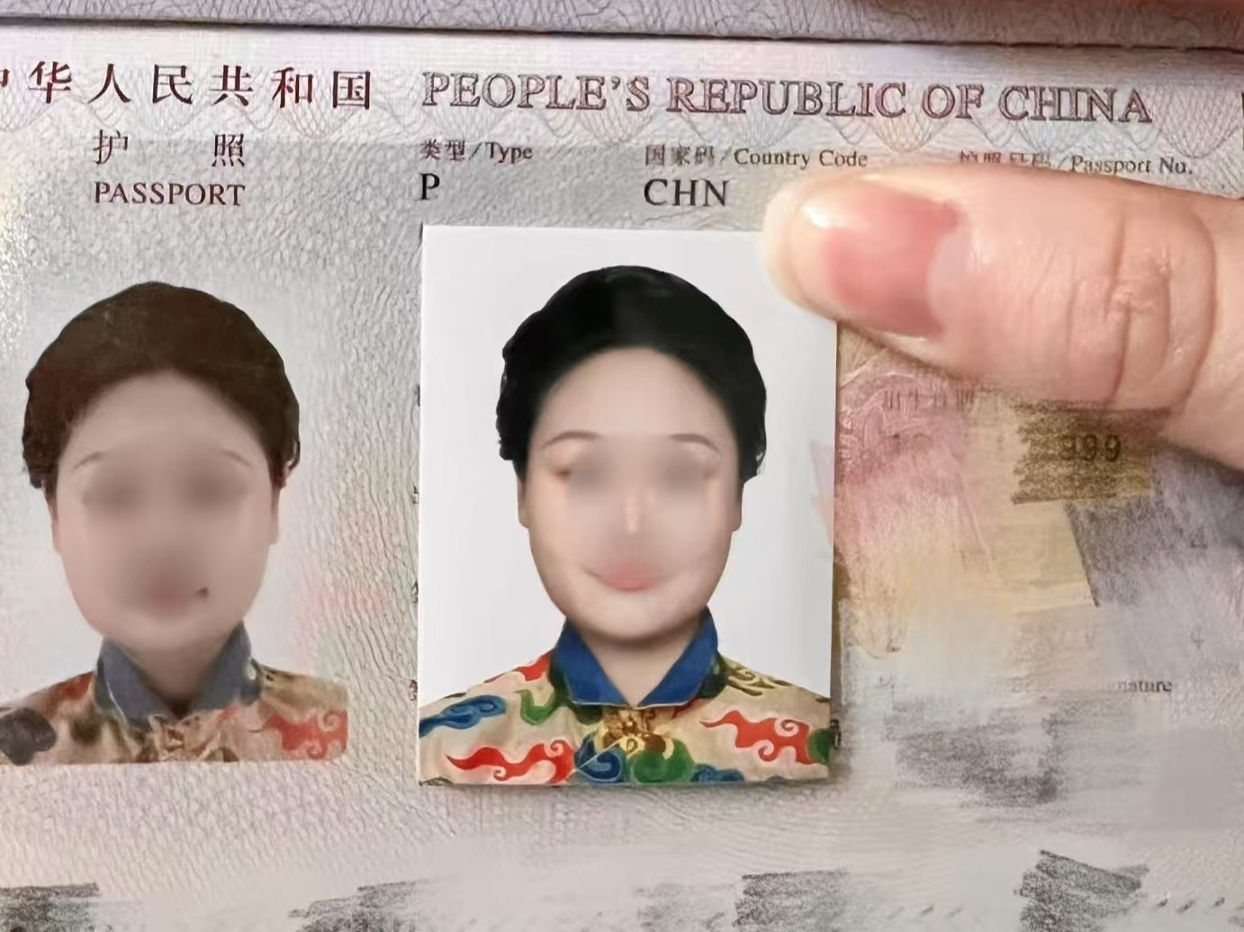 网友“小雨”穿汉服拍摄了护照照片。受访者供图