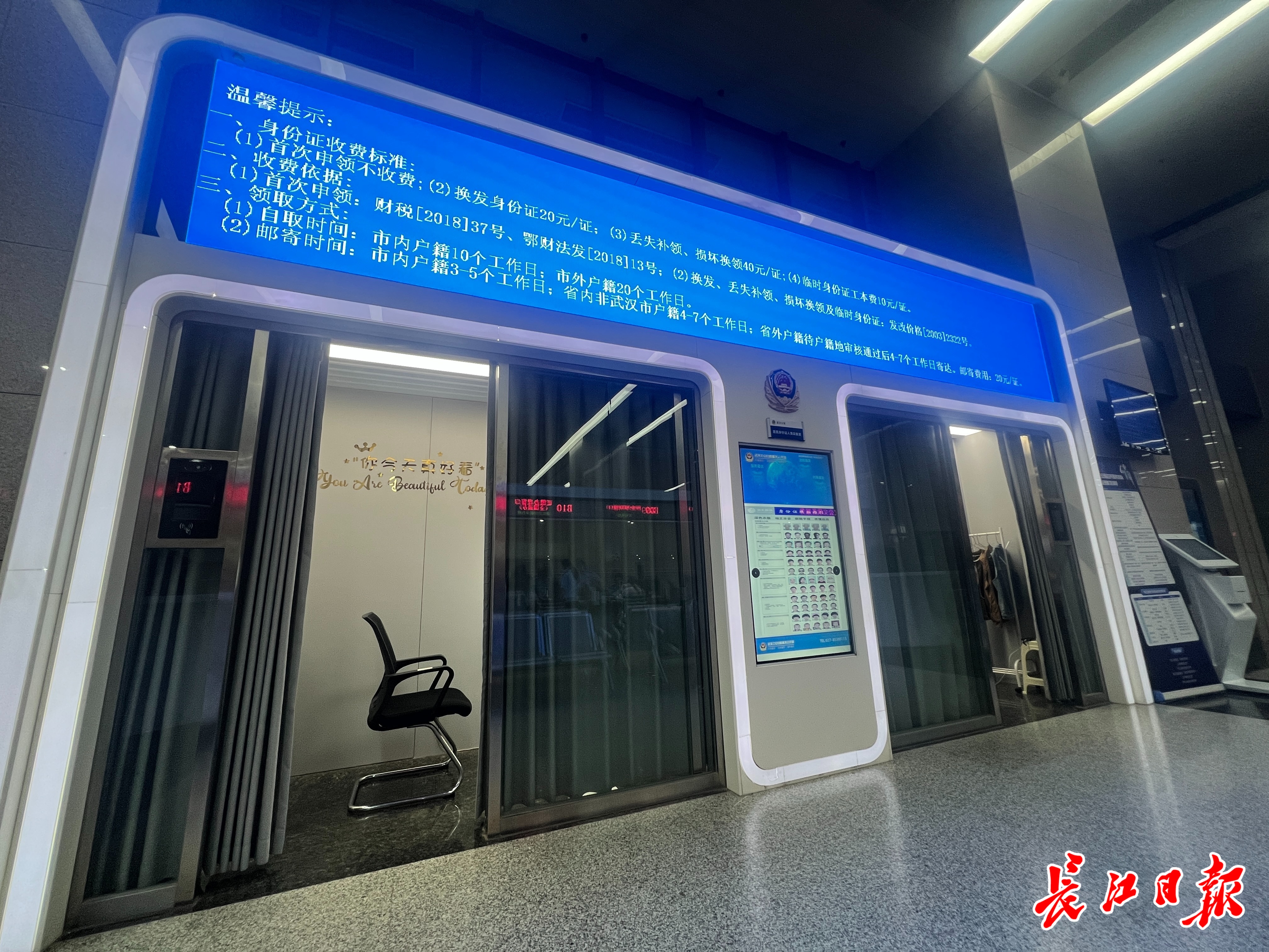 武汉市政务服务中心内,居民身份证人像采集室。长江日报记者商佩 摄