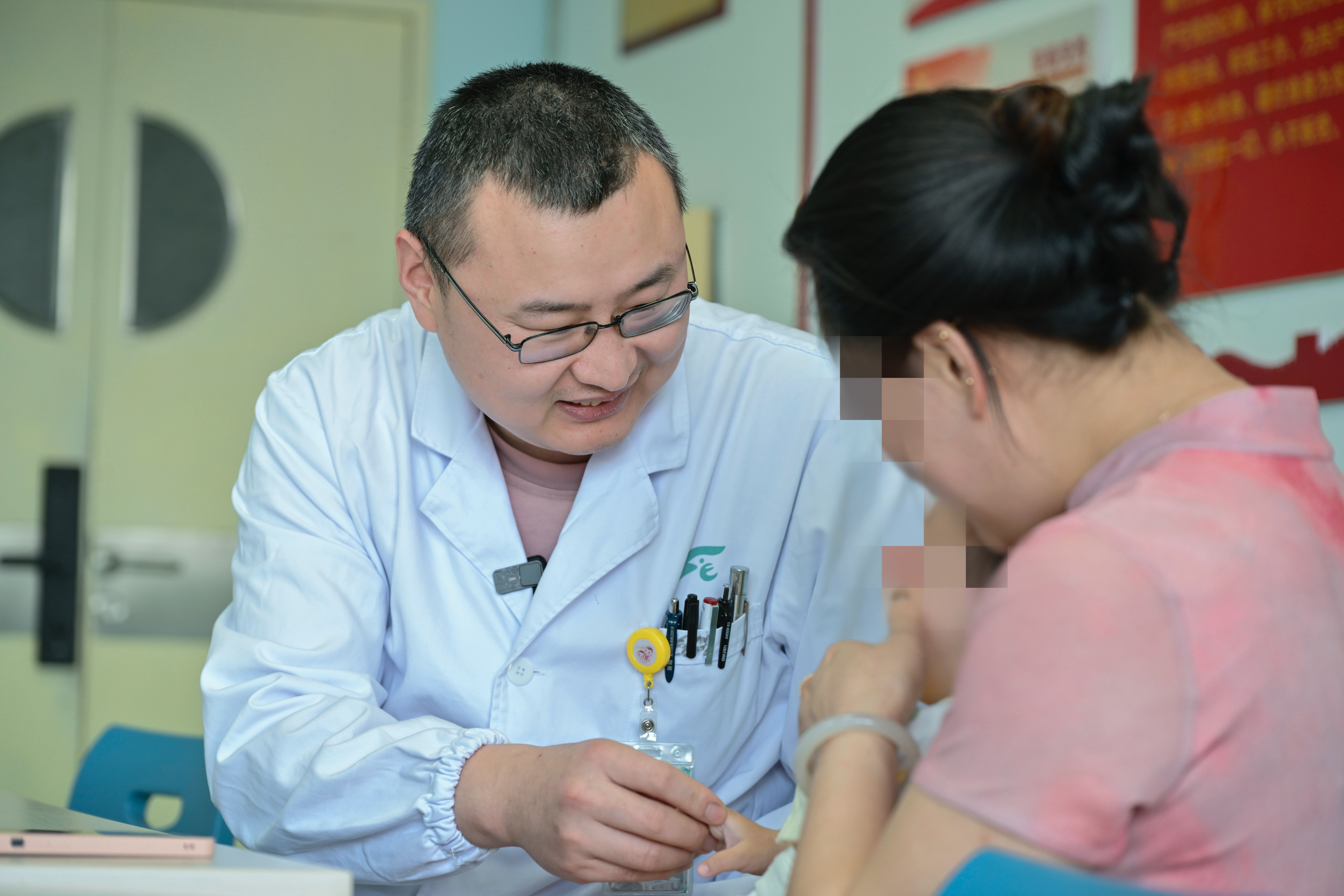 医生接诊患儿。