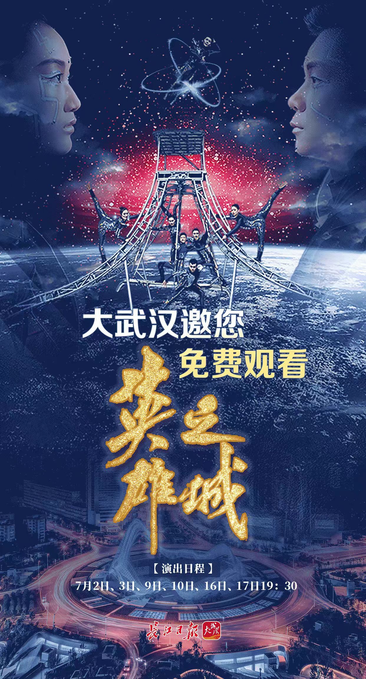 7月,《英雄之城》将连续在武汉杂技厅上演6场。长江日报大武汉客户端也将联合武汉杂技团邀请1800位市民现场共赏,在精彩的演出中感悟“英雄之城”的精神气质。