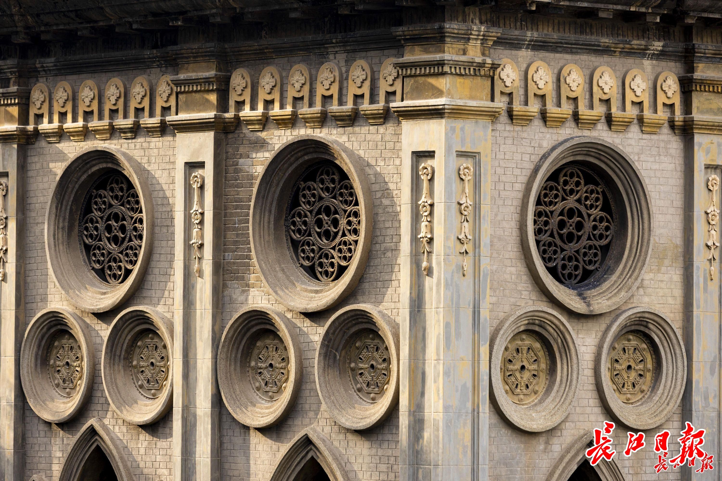 圆通宝殿外墙,蜡烛型拱门和玫瑰花窗形成独特的光影奇观。记者胡冬冬 摄