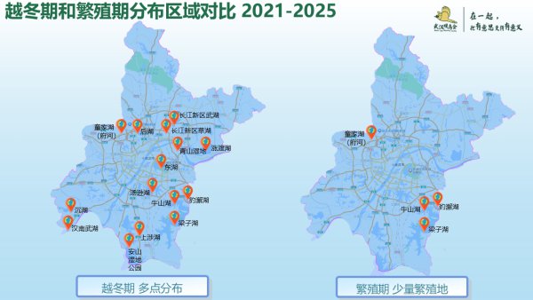武汉15处青头潜鸭分布点和4处繁殖栖息地。