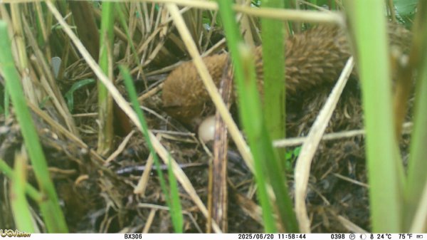 豹澥湖虾塘黄鼠狼侵入青头潜鸭巢中吃蛋。(红外相机拍摄)