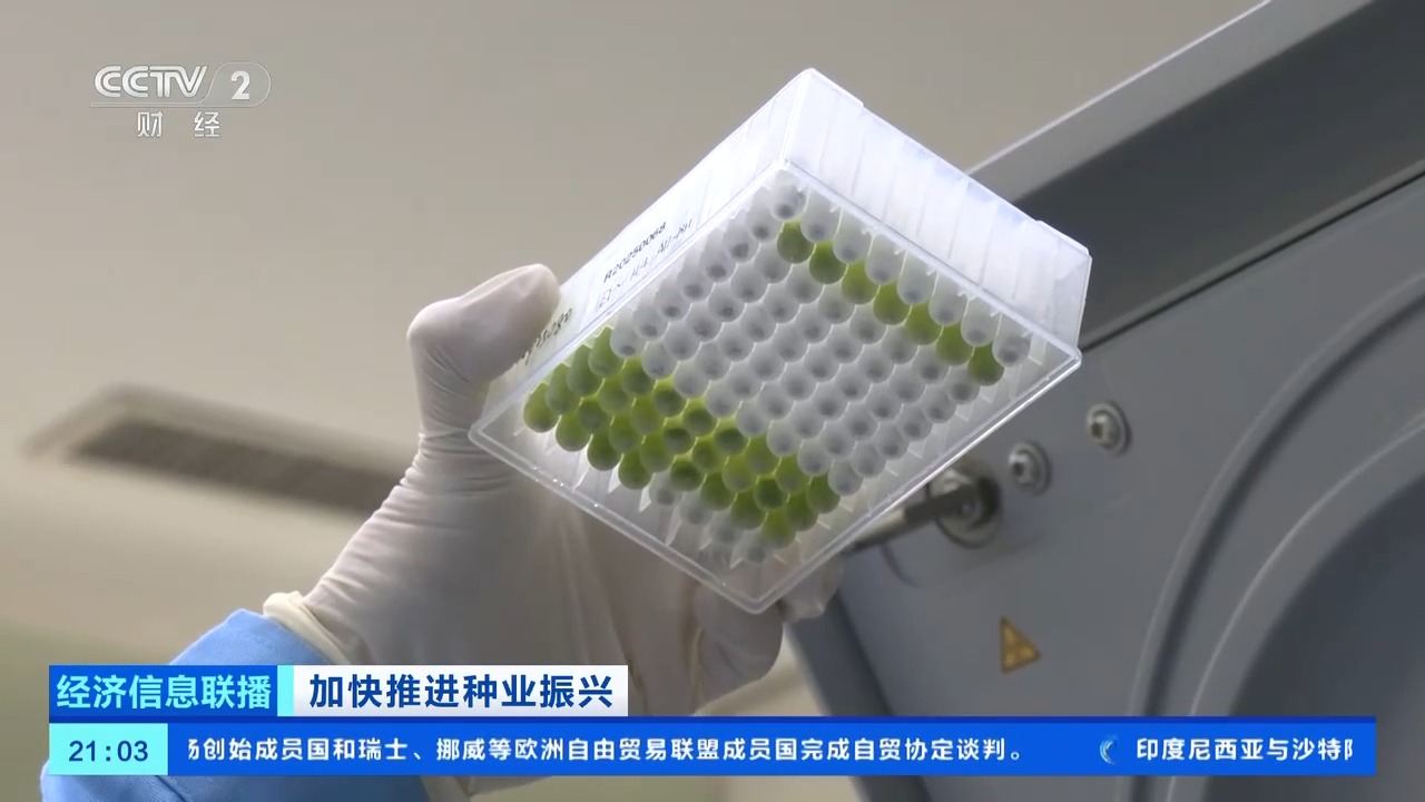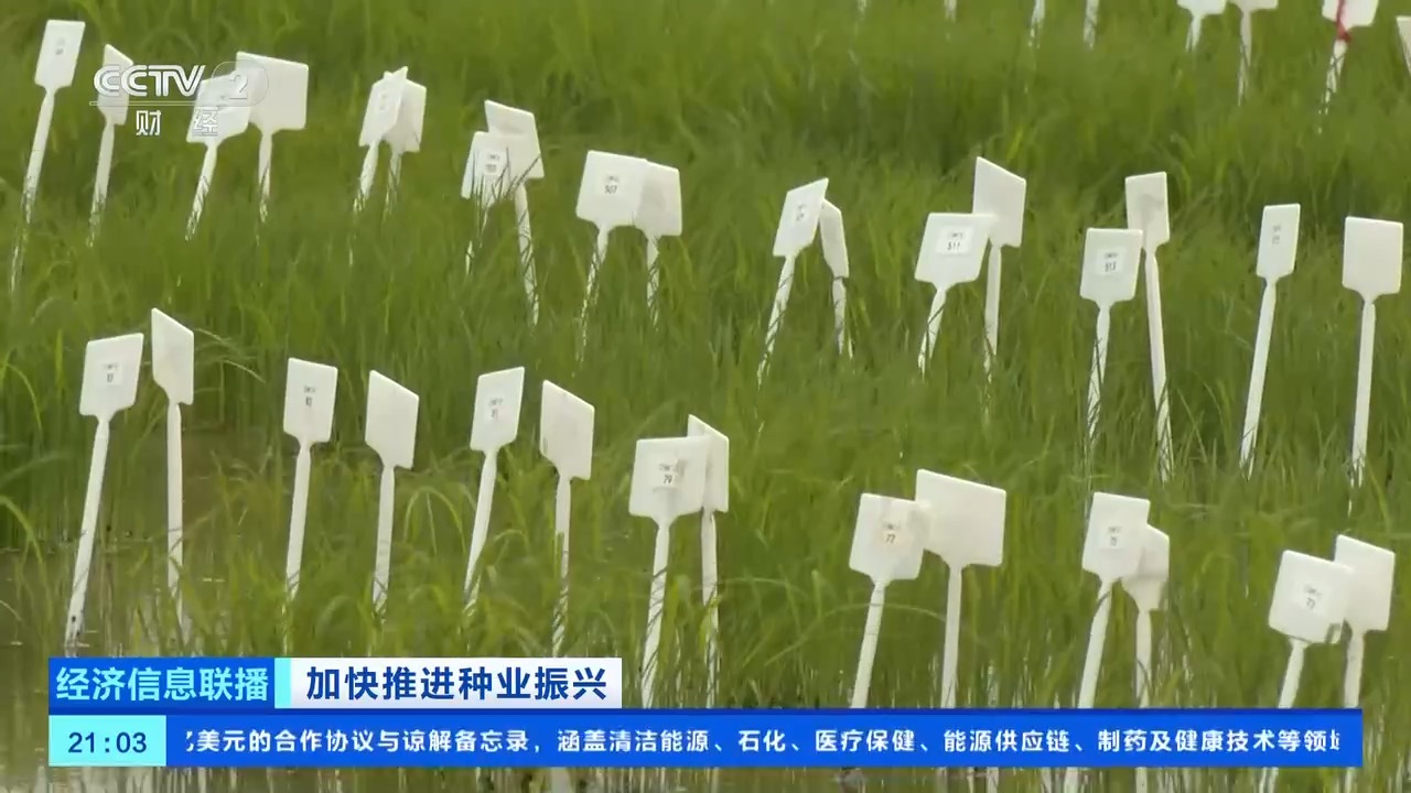 中国种子集团育种经理 张鹏:从实验室里面经过基因型检测的秧苗,在田间经过高温、低温等逆境表型筛选,优秀的单株我们才会进行组合测配,还要经过多年、多点的优中选优,一个品种大概需要7年至8年的时间才能正式进入市场。