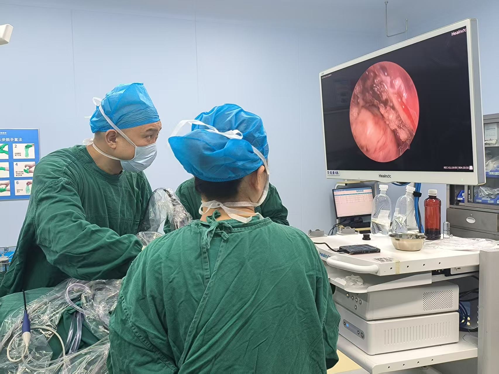 手术台上,耳鼻喉科专家们如同在“针尖上起舞”,借助高清内镜的放大视野,手术团队在极其有限的鼻腔和口腔空间内精细操作。经过6小时的奋战,这颗深埋险境的“定时炸弹”被完整切除,术中出血量仅100毫升以内。