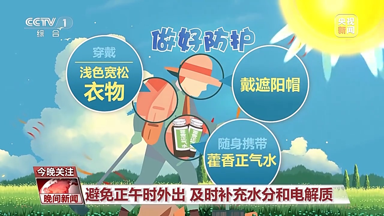 若需户外作业,应做好防护,如穿戴浅色宽松衣物、戴遮阳帽,随身携带藿香正气水等等防暑药品;