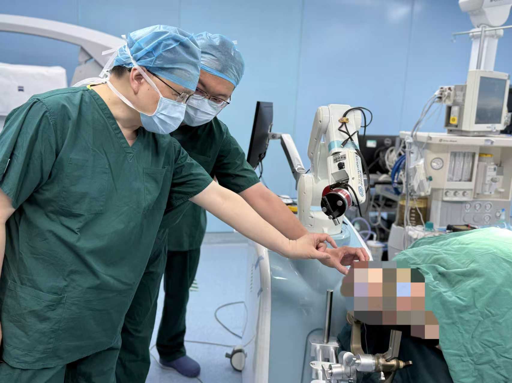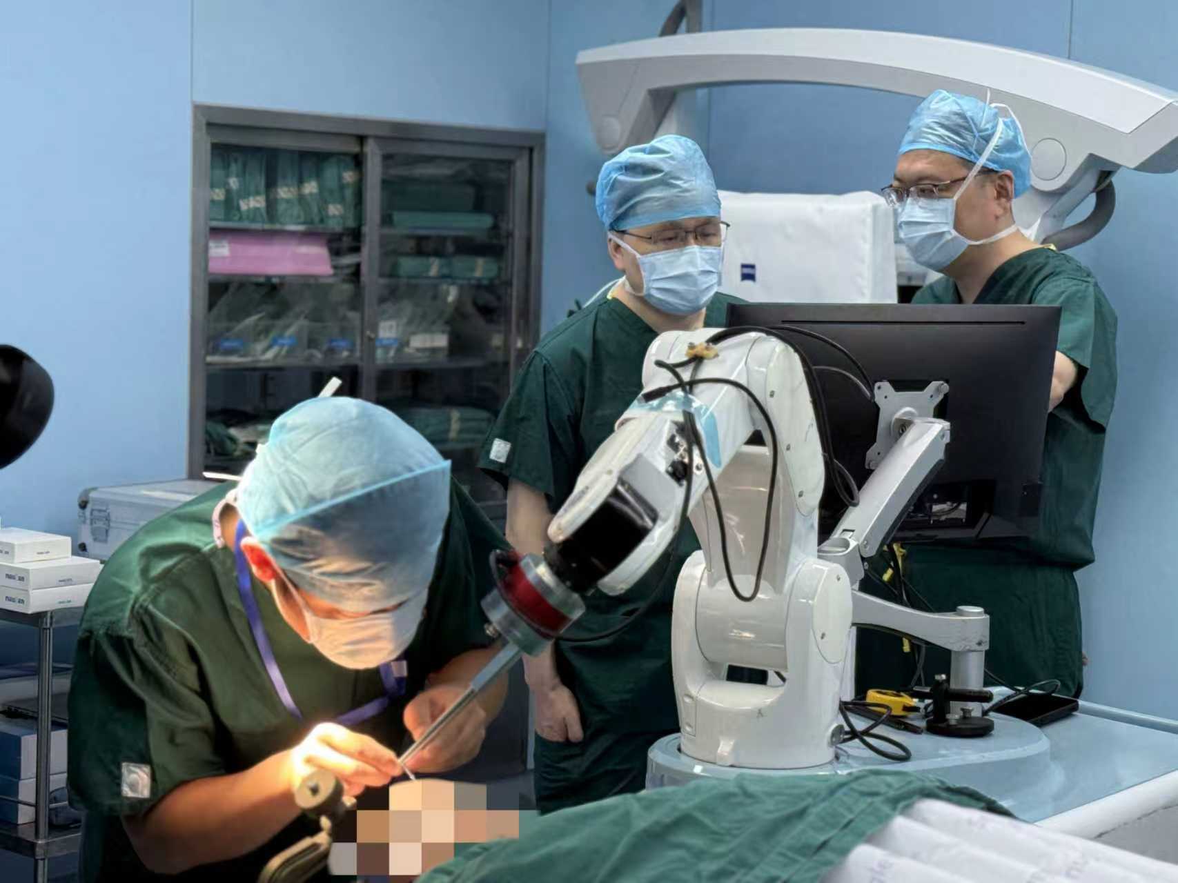6月28日,在该项目负责人、同济医院神经内科主任医师唐洲平教授的指导下,该院神经外科舒凯、胡峰医生团队为高女士实施手术。在神经外科机器人导航下,医生将两根电极精准植入到患者左侧脑部硬膜外手部运动和感觉区,同时在皮下埋藏1元硬币大小的记录设备,后续患者可通过皮肤无线进行供电和数据传输,整个手术不侵入脑组织,2个多小时手术顺利完成。