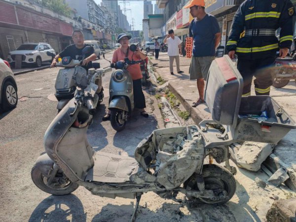 7月5日16时10分,武汉市武昌区石牌岭路一小区居民楼门口,一辆在太阳下暴晒充电的电动自行车突发火险。接警后,武汉市消防救援指挥中心立即调派武珞路消防救援站4辆消防车和20名消防员前往处置。抵达现场时,消防员看到明火已被居民自行扑灭,电动自行车的蓄电池和车座被严重烧毁。消防员立即对电动自行车及充电处周围进行检查,确认无复燃情况和其他危险后撤离现场。