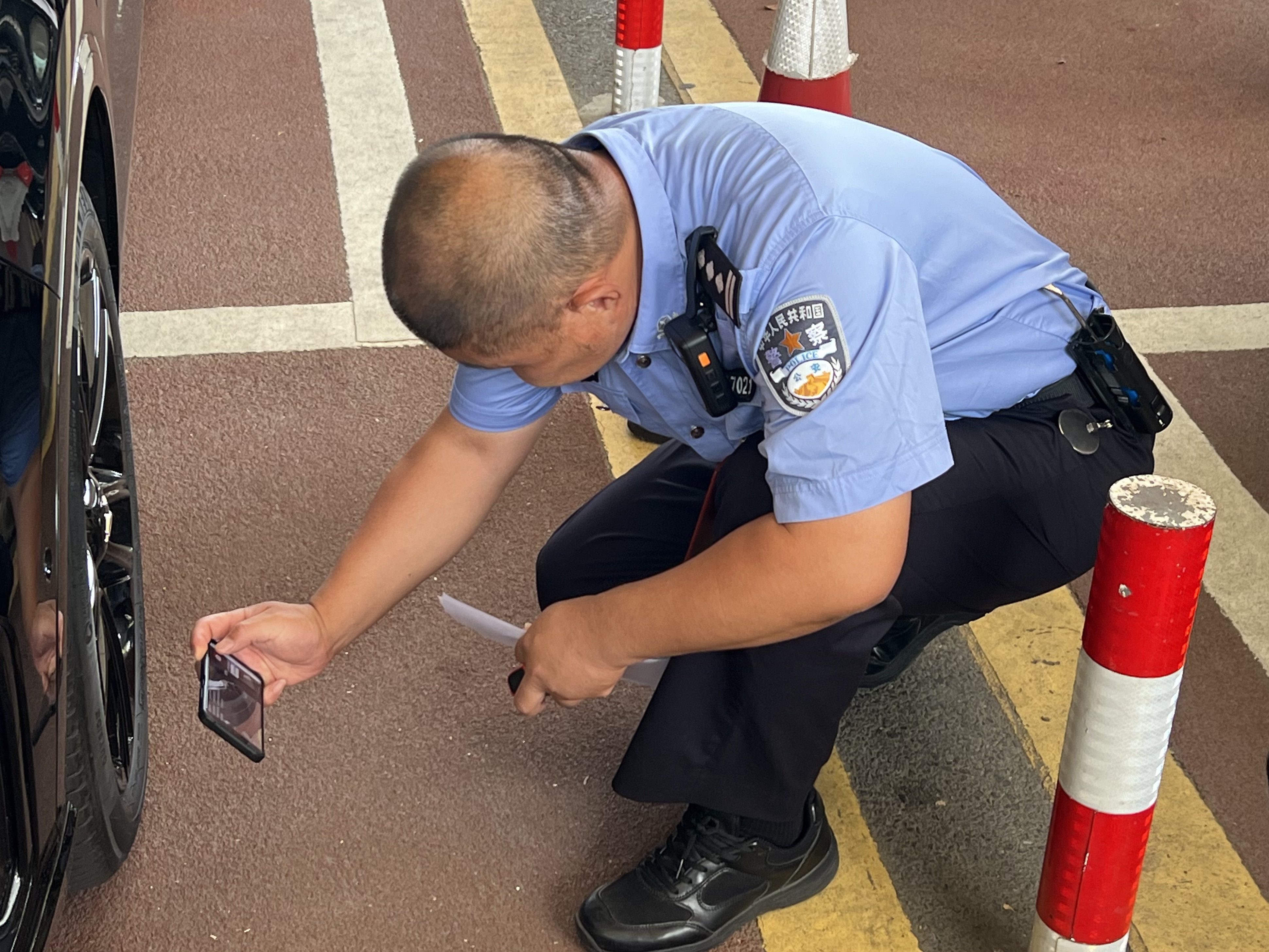 “当检验车辆的交警,就必须细致,任何有疑虑的地方都要亲手确认。”棚内气温实测已经超过38摄氏度,邓洪伸手擦了擦一台车的车架号上积攒的灰尘,核对每个字母和数字,哪怕每台车的前盖一打开都是迎面而来一股热烘烘的气流,他依然俯身打开手电筒,用手指摩挲着细细检查,“再烫也得亲手摸清楚才能放心。”