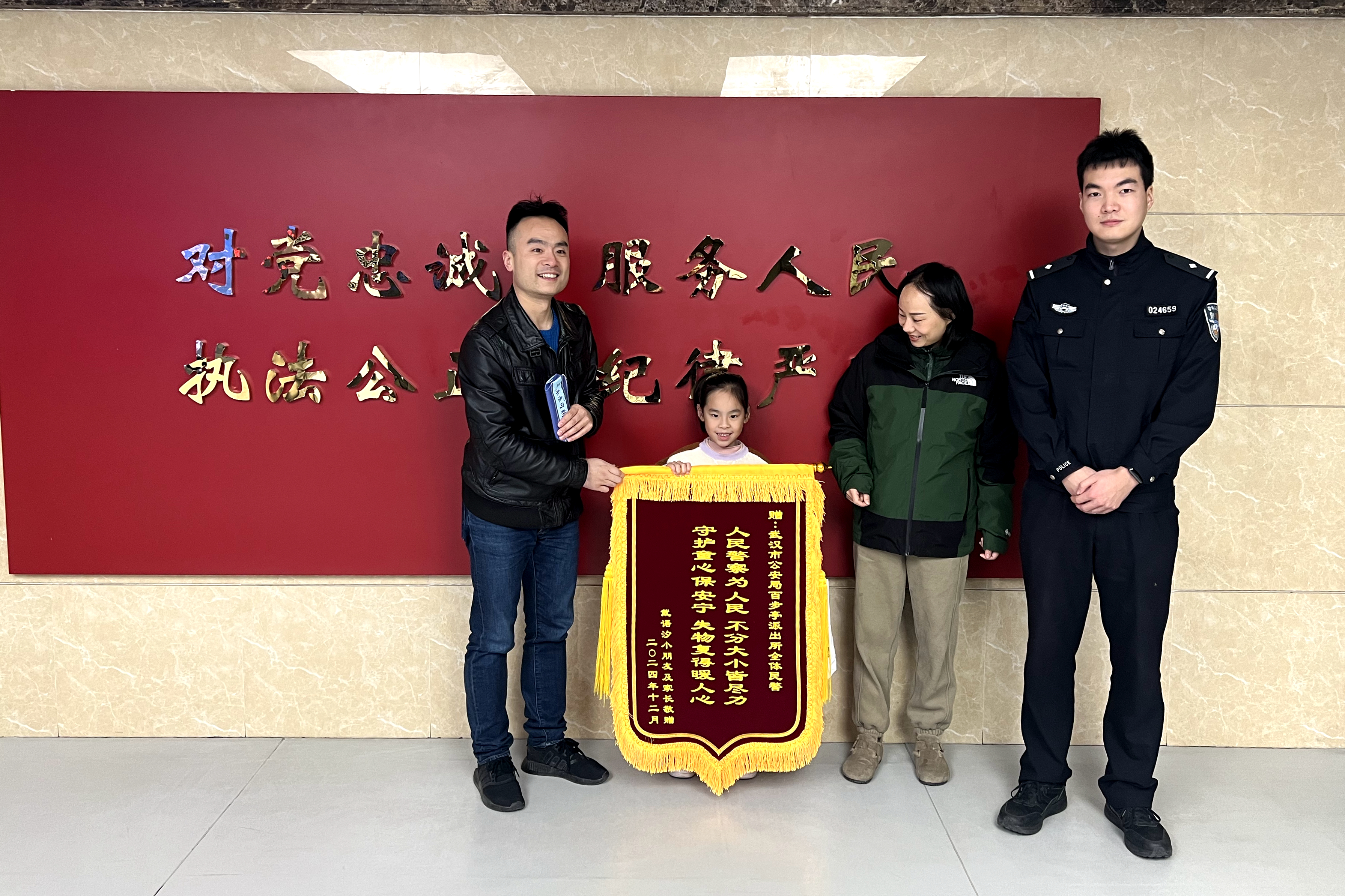 “不分大小皆尽力”,这是我们当时写在锦旗上的话,也是我们家第一次和派出所打交道过程中最大的感触。我们在百步亭派出所遇上的民警和辅警,没有任何一个人轻视这个小小的帆布袋,孩子的纪念品被他们如此重视,让我们全家都特别感动。