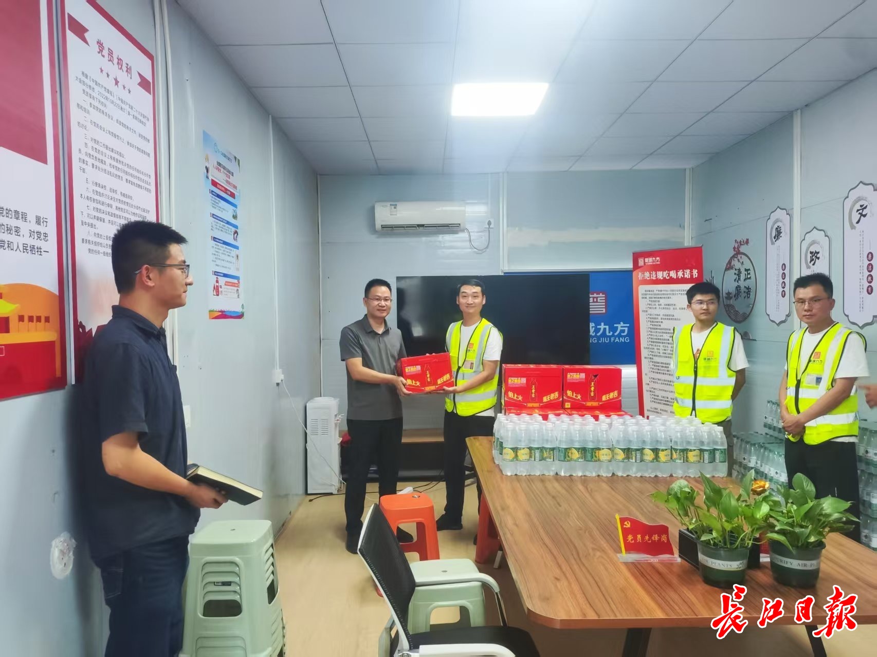 誉城九方公司给工人送来清凉。记者汪文汉 摄