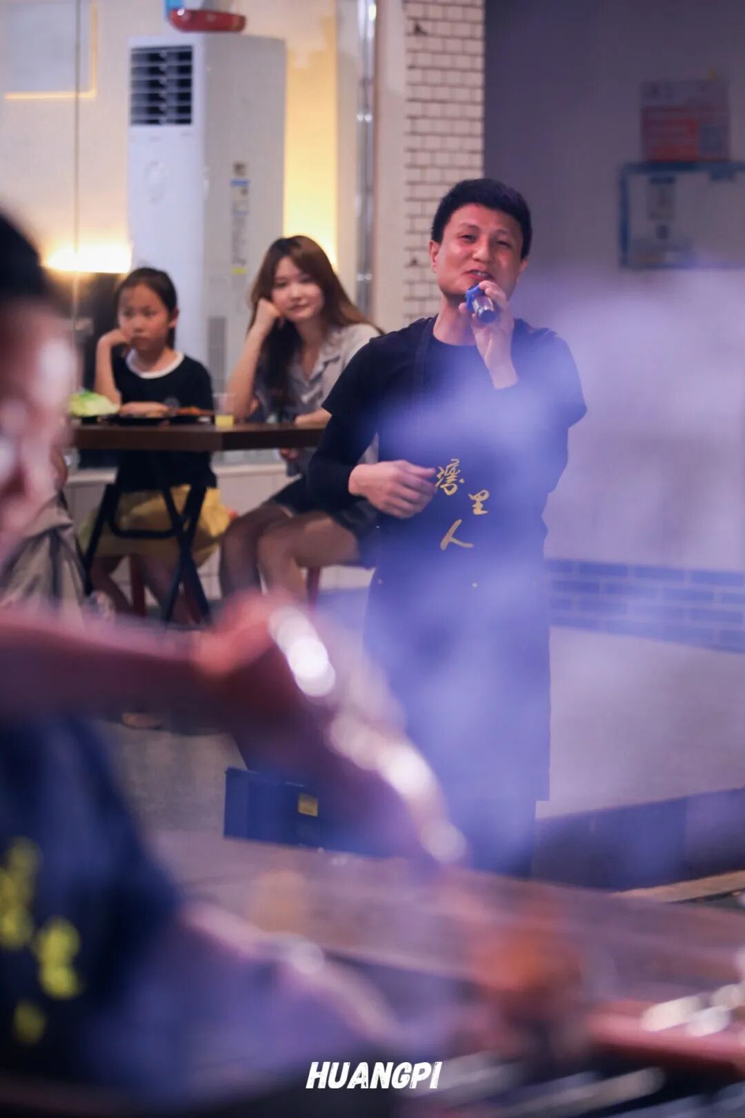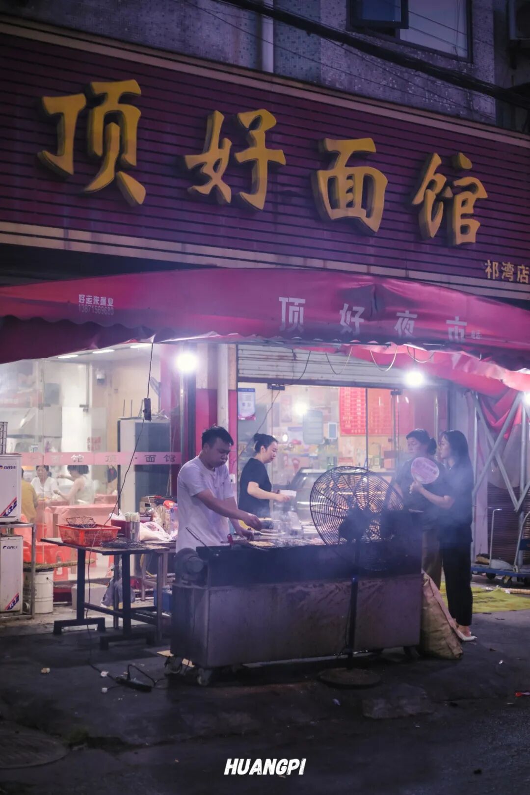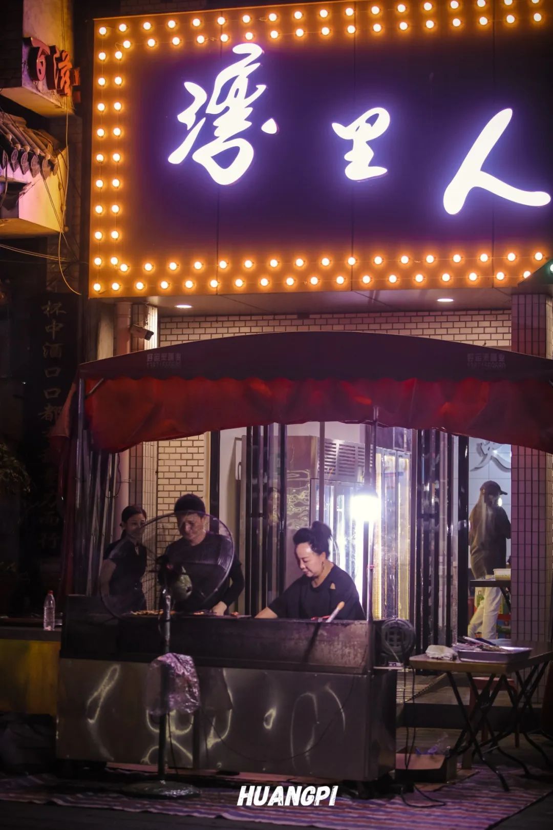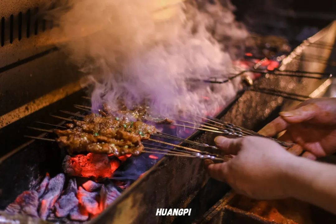 烧烤师傅烤累了会拿着话筒在门口唱老歌,路过的食客有时会合唱,歌声混着残留的炭火气,这是属于祁家湾的深夜食堂BGM。