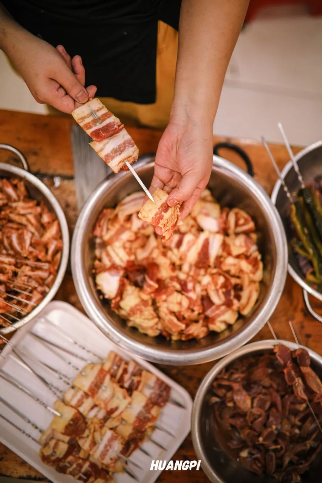 但她从不让菜场老板代切,“自己切的肉才能保证新鲜!肉的纹路得顺着切,不然烤出来发柴。”