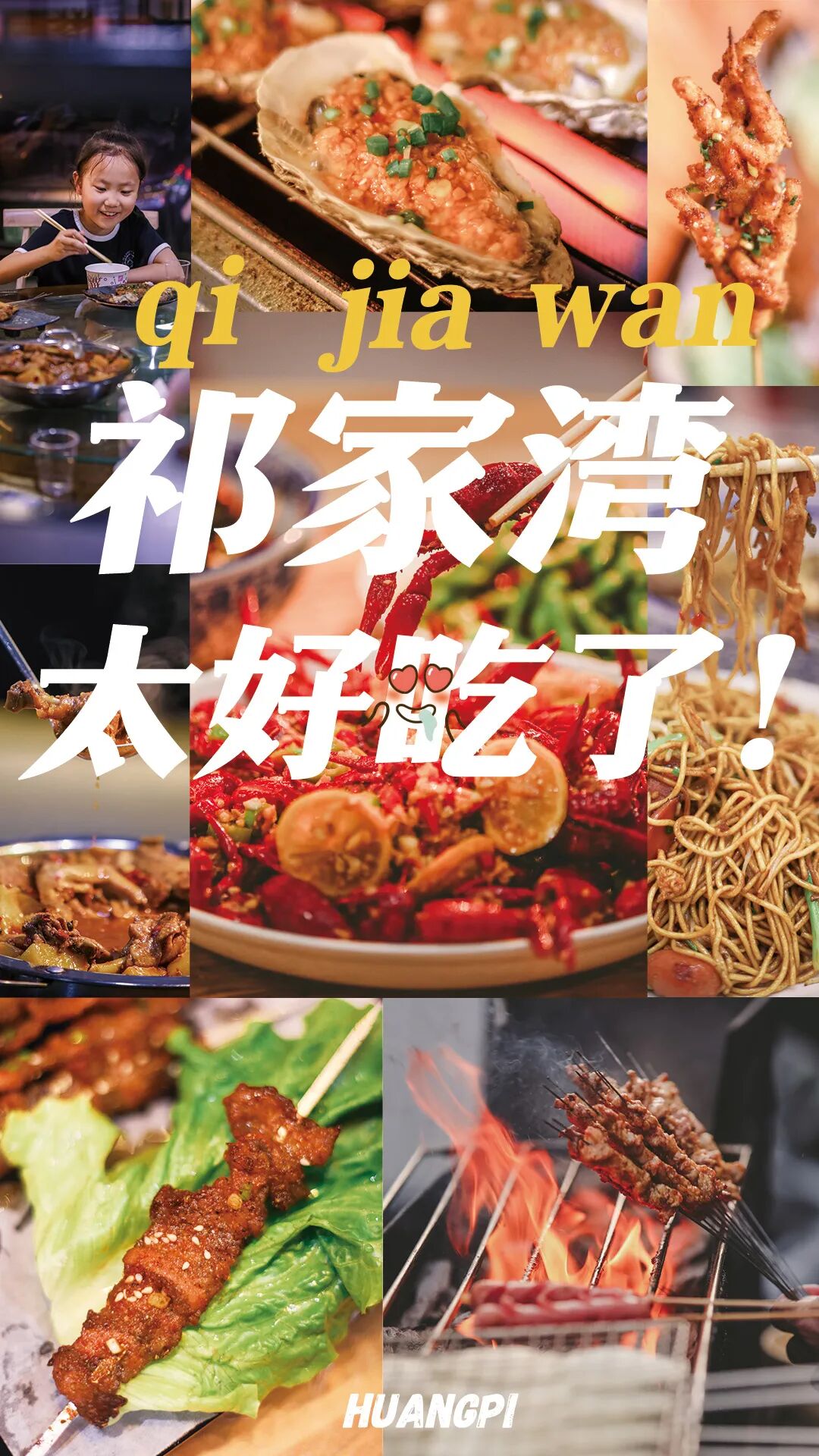 来了才发现这条没有花哨霓虹的老街有太多好吃的了,清新爽口的芥末柠檬小龙虾、鲜嫩爽脆的大腰子、XL号的烤鸡爪、香香辣辣的鸭子煲、祁家湾独有的烤豆腐......
