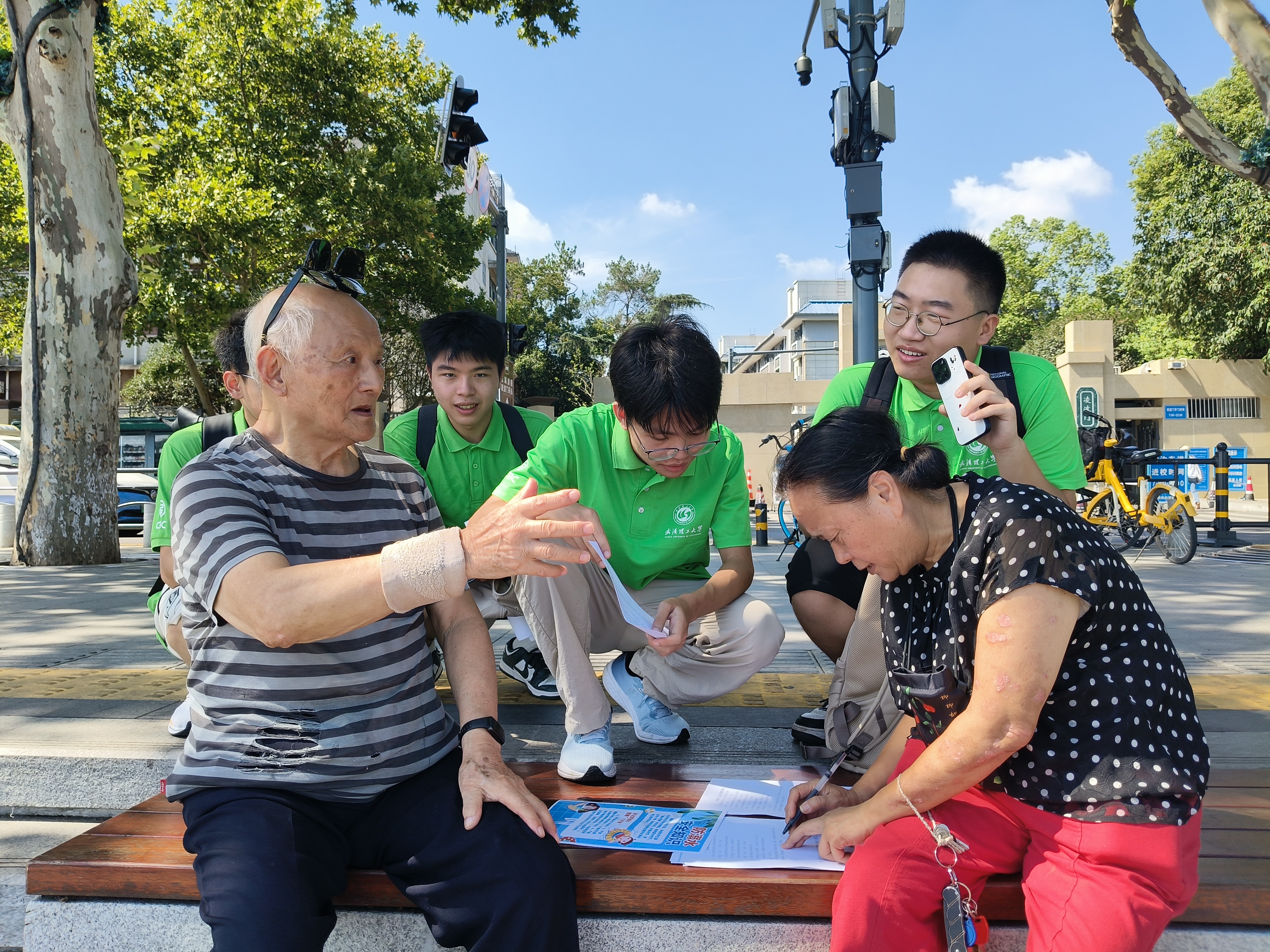 “蔚蓝东湖”实践队与退休老人交谈。刘闽 摄