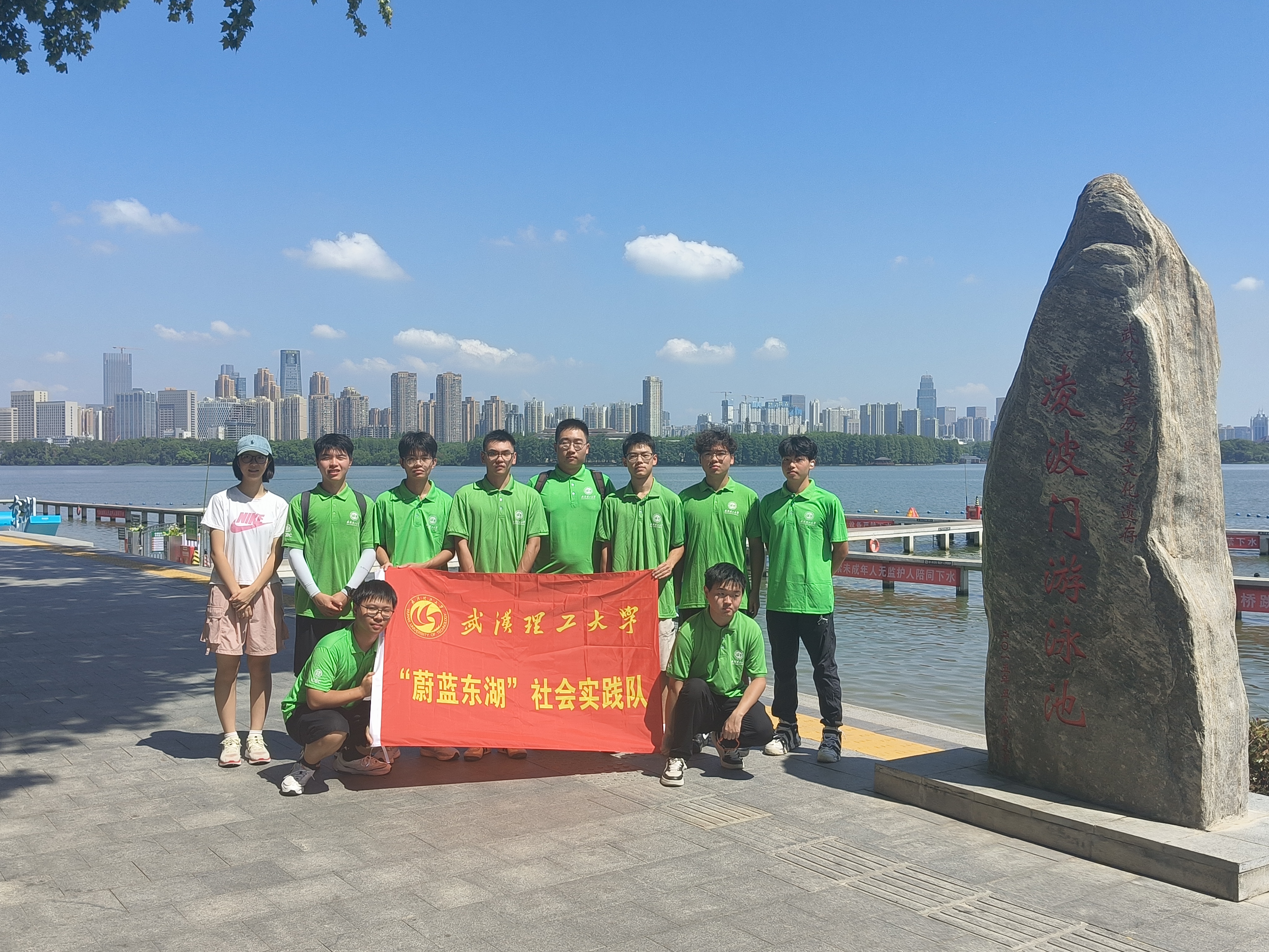 “蔚蓝东湖”实践队员在东湖凌波门。刘闽 摄
