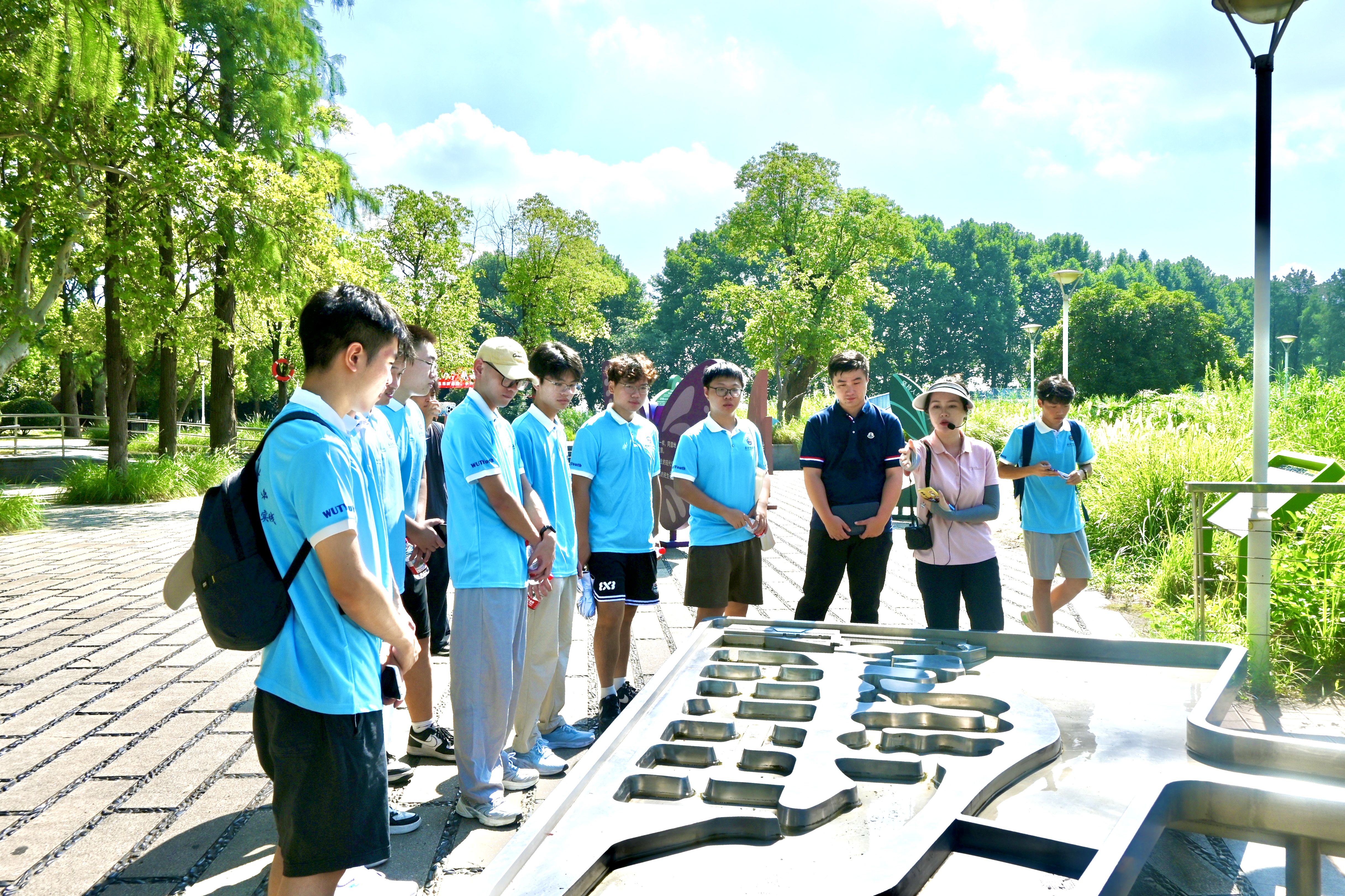 自7月24日起,武汉理工大学航运学院“蔚蓝东湖”实践队先后走访了华侨城生态湿地公园、中国荷花研究中心、中国履行《湿地公约》30周年成就馆、落雁湿地科普展厅、凌波门等地。在辅导员的带领下,武理工学子们背上空瓶,在东湖沿线水域取水测试,边走边听边聊,在笔记本上勾勾画画,一张张空白页也被填上了密密麻麻的笔记……