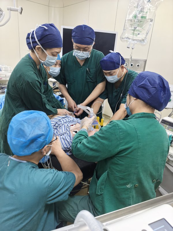 然而,多多体重过大,伴有呼吸睡眠暂停综合征,夜间血氧饱和度低至60%,手术麻醉及术后恢复风险极高。耳鼻喉科主任段传新组织手术麻醉科及儿童重症医学科多学科会诊,制定了周密的方案。