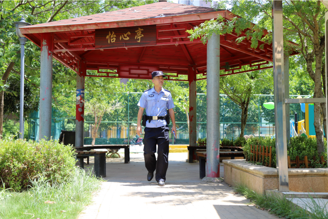 民警王政在社区里巡逻。 (通讯员蒋晶晶 供图)