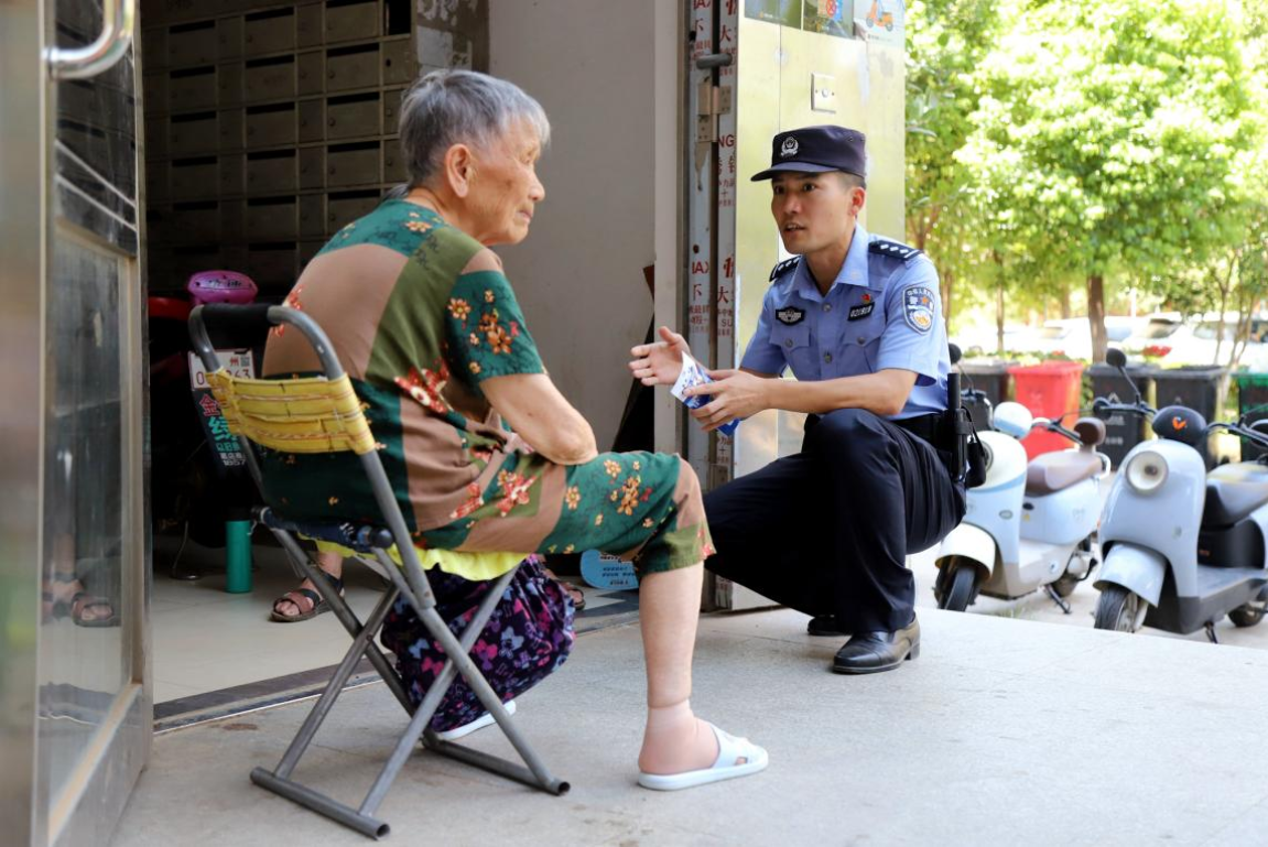 民警王政在社区里向居民宣传反电诈信息。 (通讯员蒋晶晶 供图)