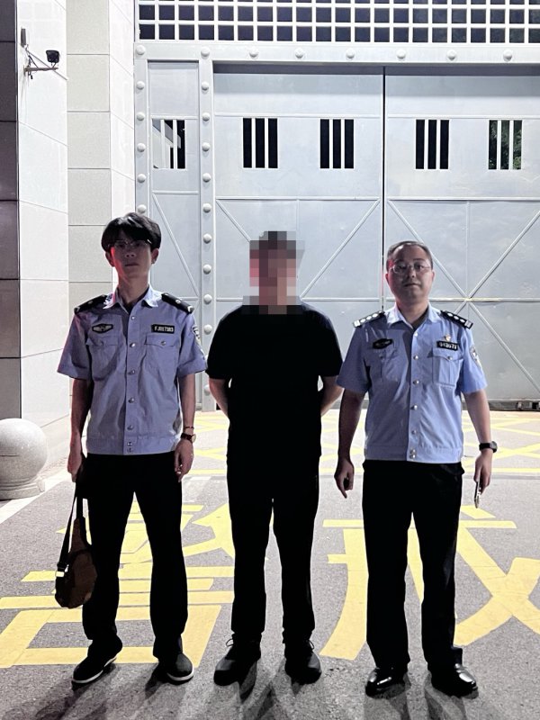 嫌疑人贾某(中)落网了。 通讯员李文茂 摄