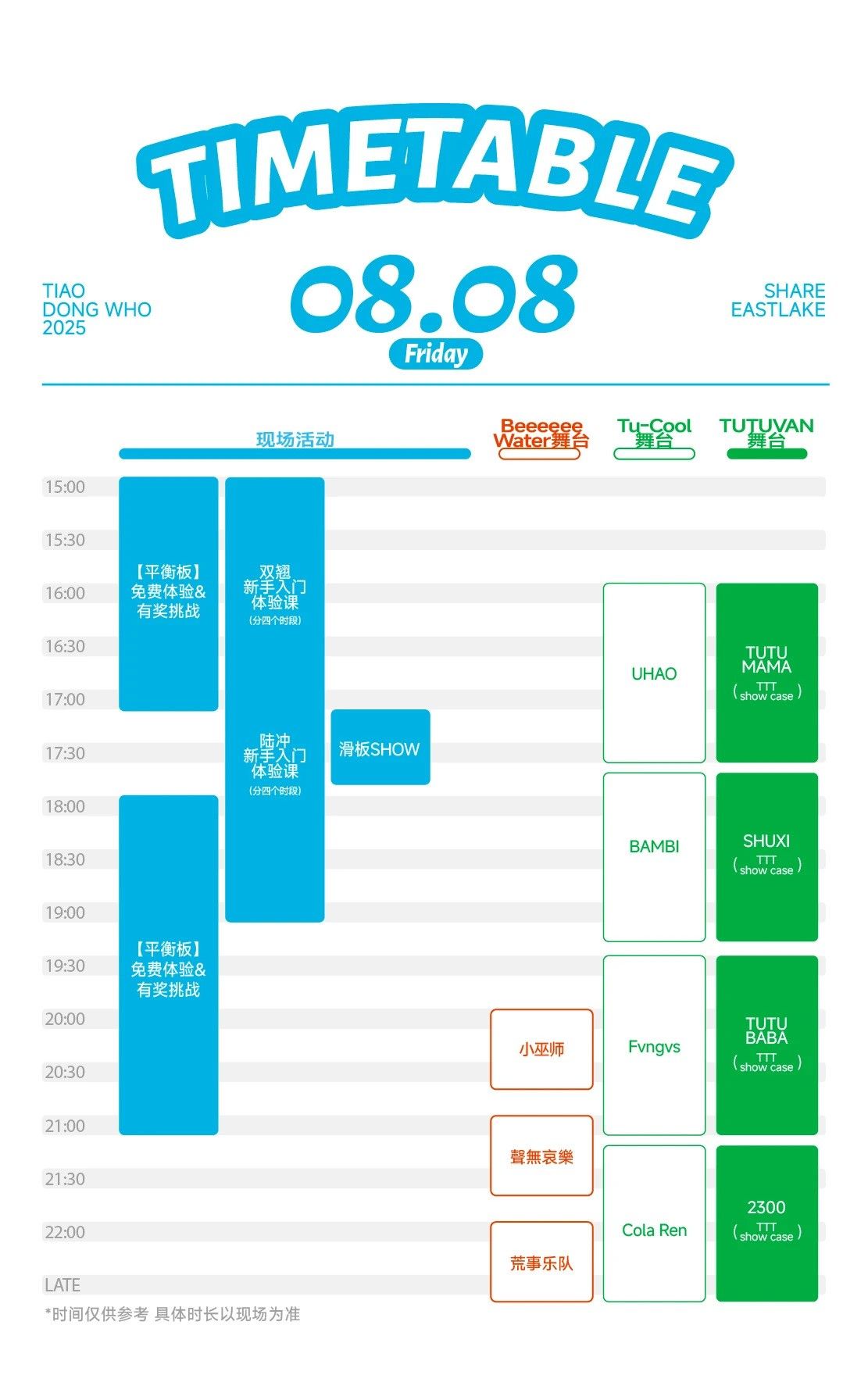 8月8日—8月10日跳东湖活动时间表。