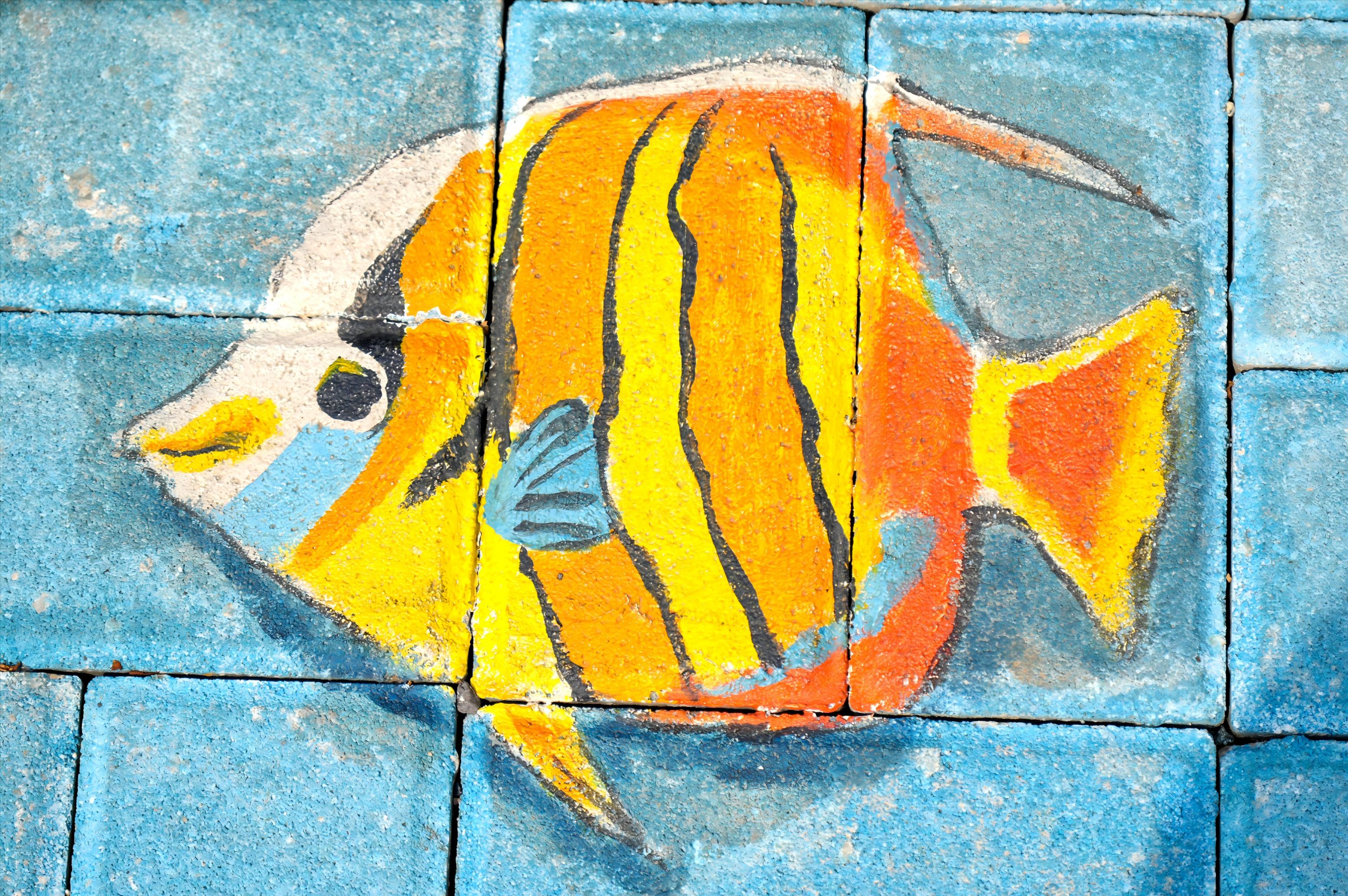 地面步砖绘制热带鱼。通讯员供图