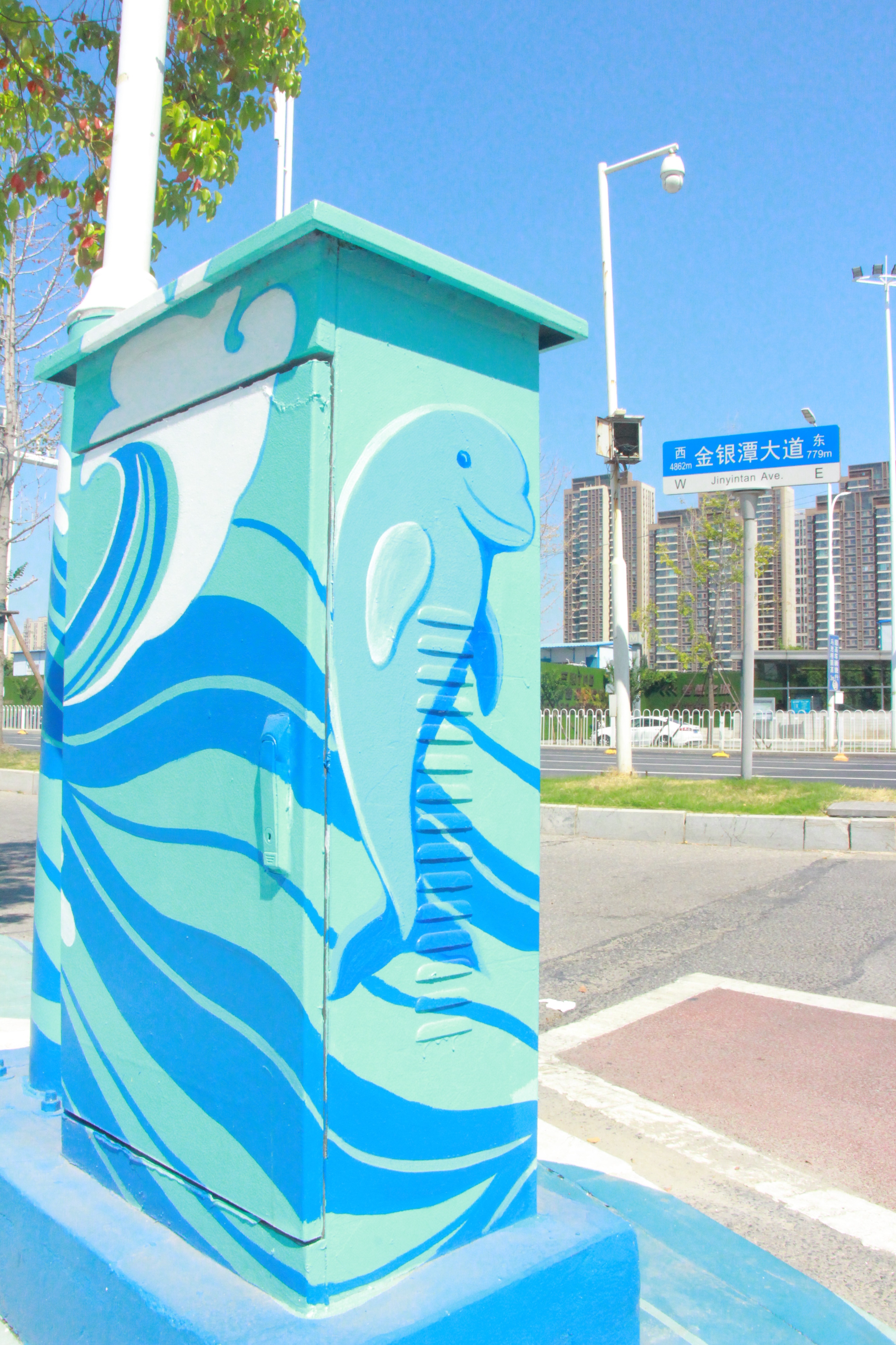 箱柜绘制可爱海豚。通讯员供图