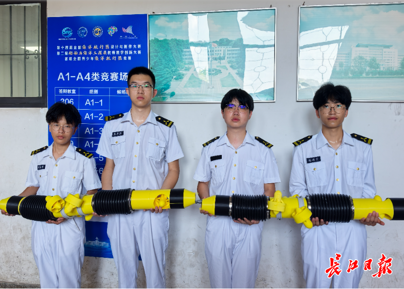 大赛还包括新概念创意设计项目。武汉理工大学船海与能源动力工程学院2023级轮机工程专业学生刘轩睿、恩展栋、张嘉豪、路皓文、谢嘉睿的参赛项目,是一款用于水下管道排查的蛇形机器人,他们为它取名“海绡游龙”。团队设想,这款机器人模仿水蛇游动的仿生结构,搭载声呐加光谱双控识别模式,通过算法叠加提升检测精度,可精准排查海底输油输气管道、电缆等的破损情况。