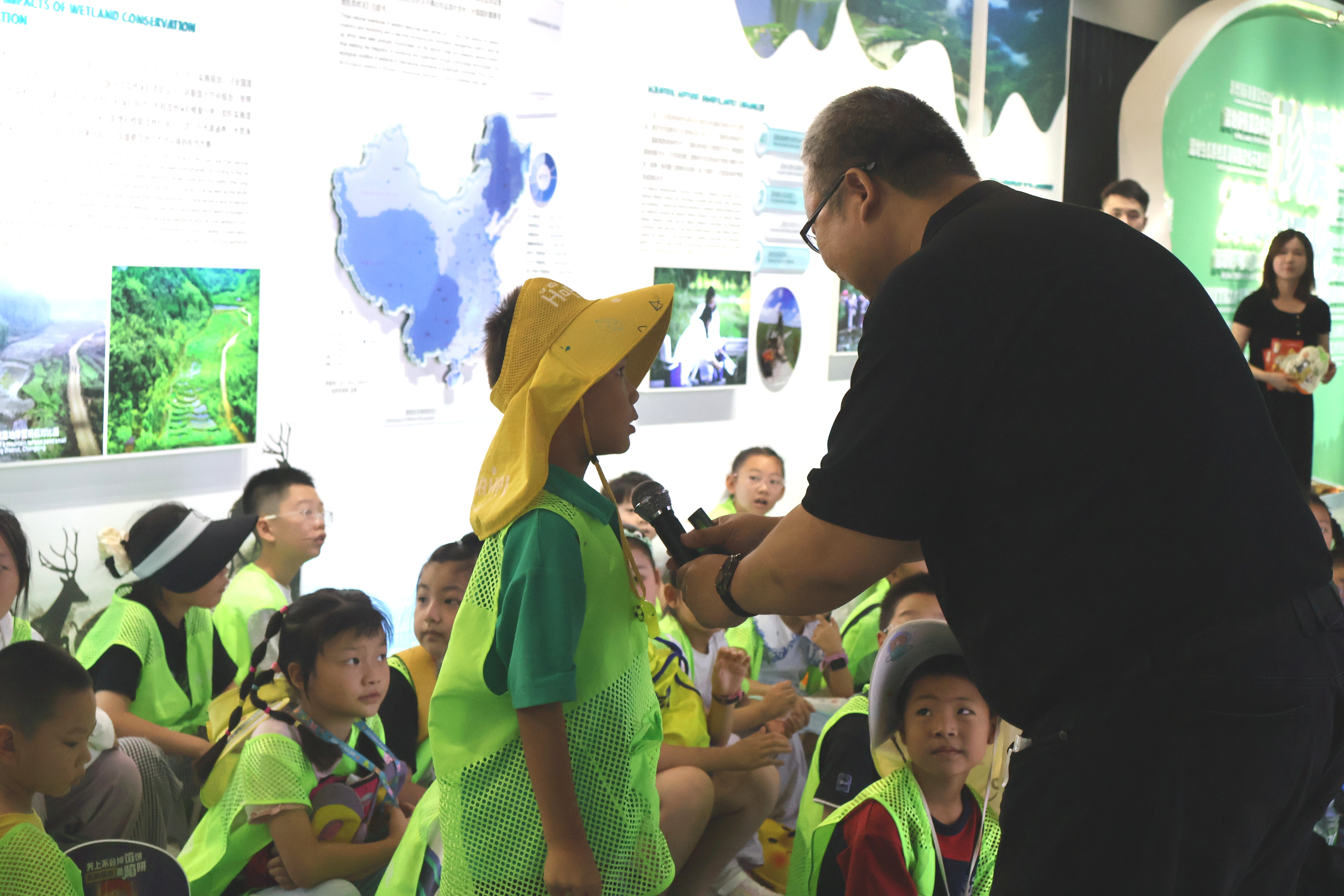 “我们吃的小龙虾是不是外来物种?”8月15日上午,中国履行《湿地公约》30周年成就展示馆内气氛热烈,武汉市暑期爱心托管班的20多位“小小生态观察员”围坐在一起,跟着武汉市生态环境局正高级工程师徐栋探秘东湖水环境治理的秘密。