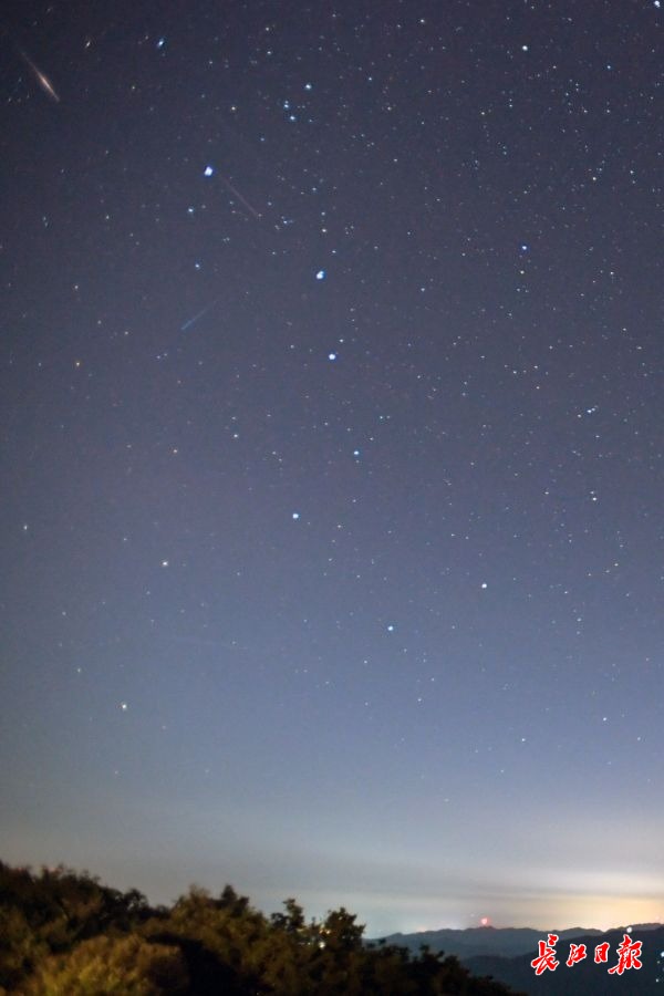 英仙座流星雨的活动时间从7月中下旬一直持续到8月中下旬,时长近一个月。根据相关预测,今年英仙座流星雨的峰值期是8月13日。由于那段时间月亮处于满月状态,加上夜空中云多云厚,观测效果大打折扣。8月21日晚至22日清晨,几名天文爱好者相约来到武汉市最北端刘家山清凉寨山顶,在夜空中观测到少量流星。