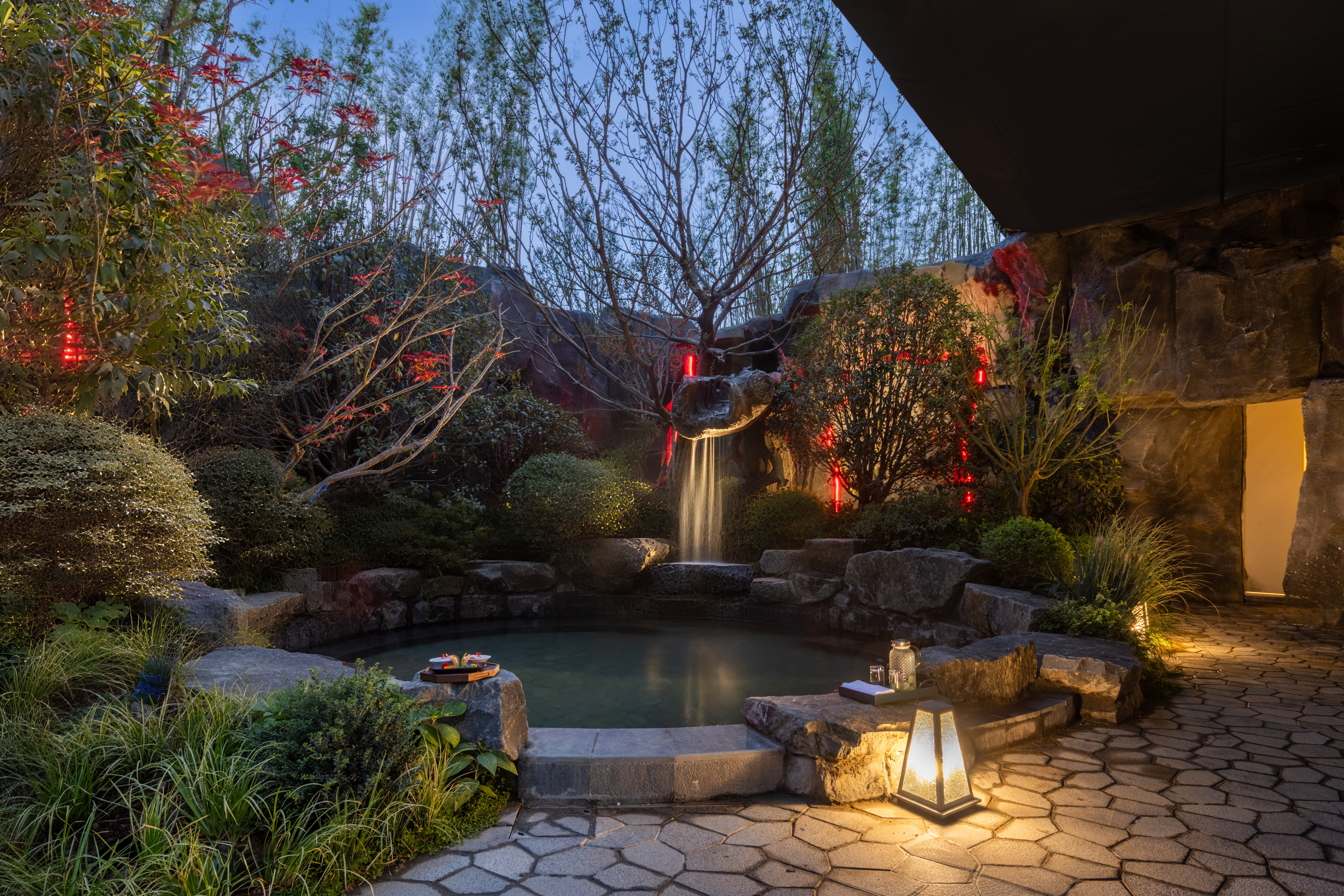 武汉甘露山花间堂·岚雪室外汤池。