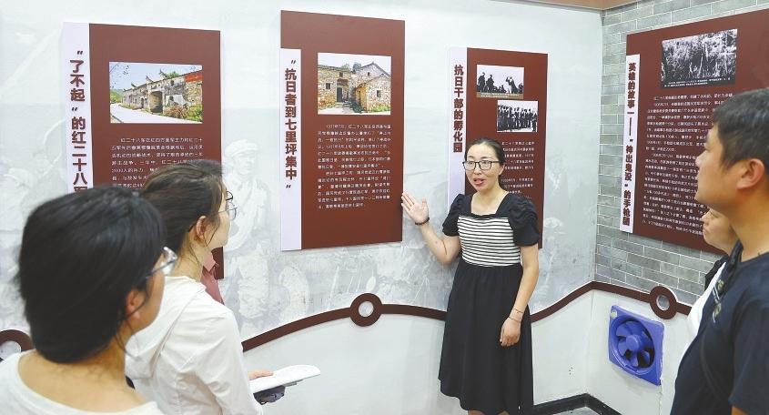 游客多了,村里缺讲解员,乡亲们都推荐秦燕波,说她普通话说得利索。从刚开始的“赶鸭子上架”,到现在的游刃有余,背后是勤学苦练。2022年至今,秦燕波已义务讲解100多场,最多时一天要讲5场,“每次讲解,都是一次精神洗礼。也通过我的讲解,能让更多的人了解这段历史,大家共同来传承伟大抗战精神。”
