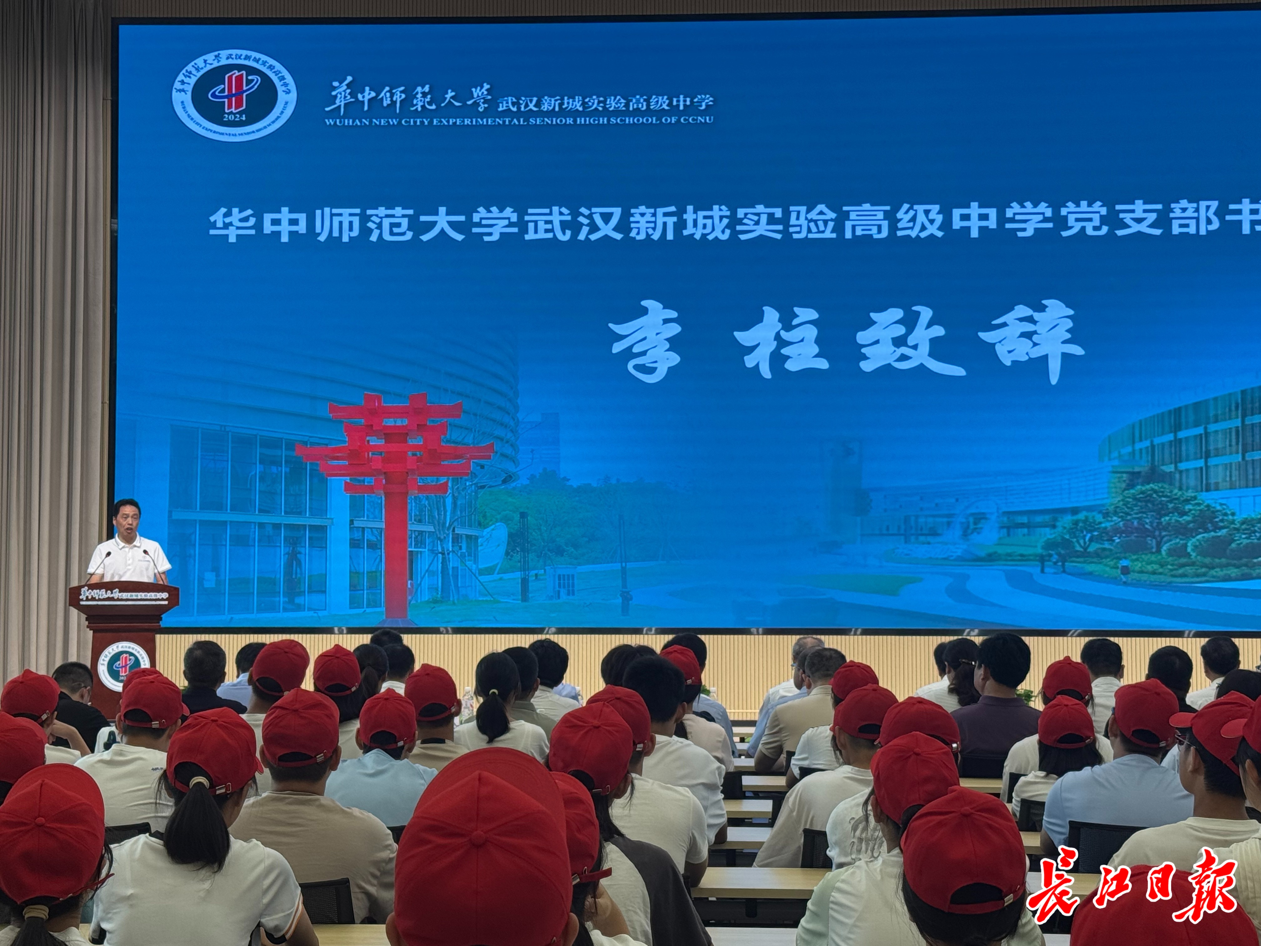 在开学典礼上,华中师大一附中校长徐惠向新城实验高中授予“华中师大一附中东校区”校牌,并强调将全力推动师资互通、课程共享、管理同步,实现“资源共享、品牌共建、质量共进”。