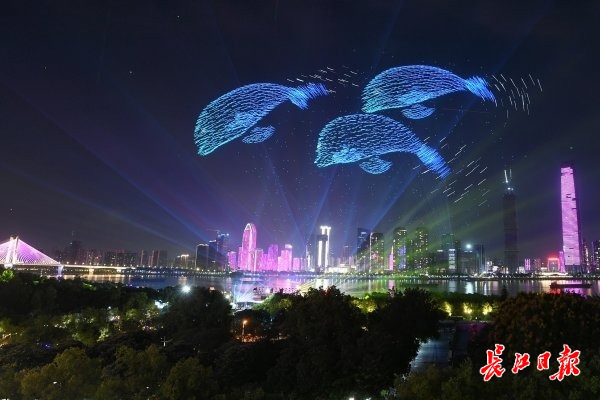 据介绍,开幕式围绕“人民母亲河”“生态长江”“文化长江”“开放长江”“长江新时代”五大主题。除舞台节目外,科技与艺术的结合也成为本次开幕式的一大亮点。4000架无人机与舞台演出、夜空烟花联动,展演“江豚逐浪”“花开中华”等震撼画面,夜空光影与舞台演出相互辉映,营造出“江天一色”的壮丽景观。