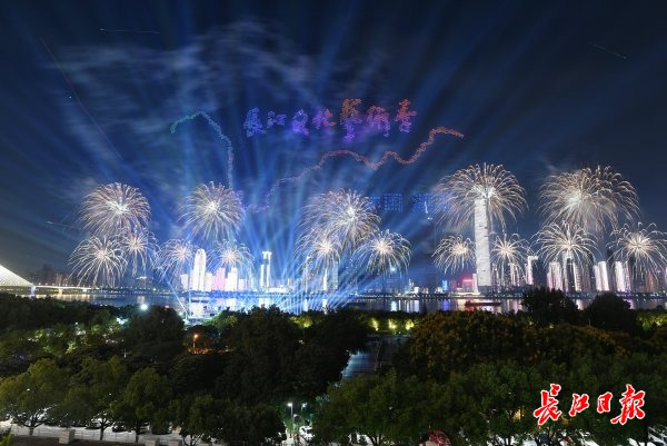 武汉两江四岸点亮2025长江文化艺术季主题灯光秀。缤纷光影流转于楼宇之间,灯光辉映之下,江水、天空与建筑交融一体,美轮美奂,营造出浓郁的艺术氛围。