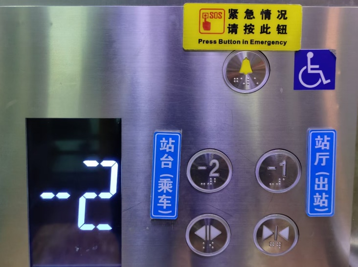 地铁垂直电梯按钮处的盲文。 实习生陈玉婷 摄