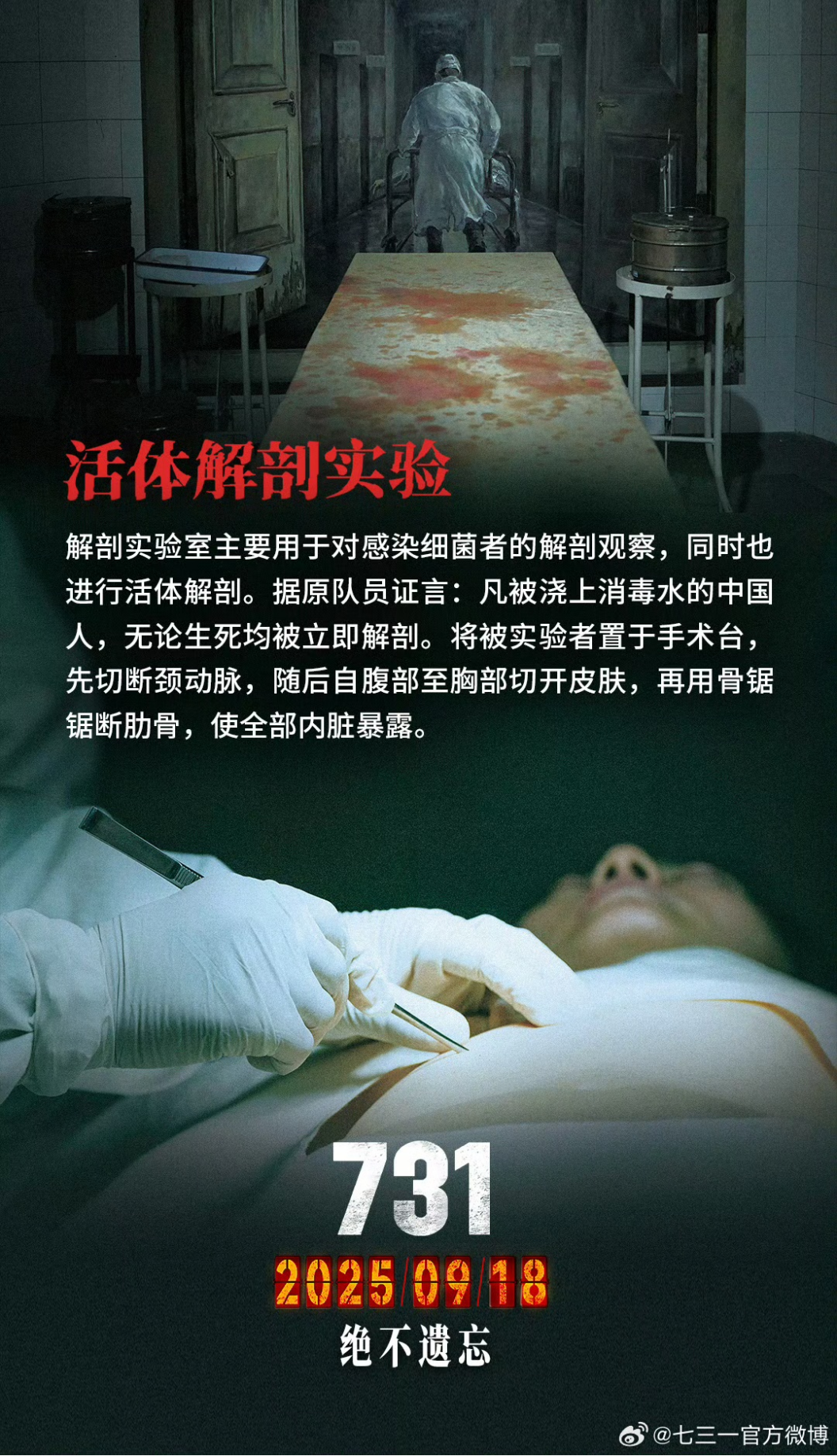 整个过程,包括取证、剧本、拍摄等,到今天为止已经11年。这部电影能够在中国人民抗日战争暨世界反法西斯战争胜利80周年的契机下推出来,我觉得对我们这一段工作、对731的遇难者是极大的安慰。