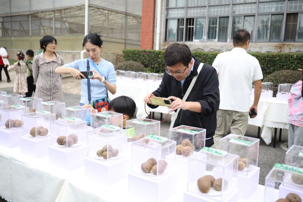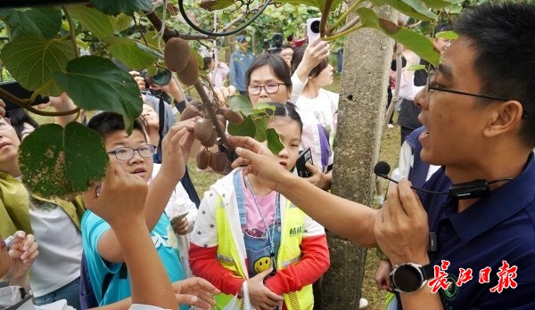 市民参观猕猴桃新品种。中国科学院武汉植物园提供