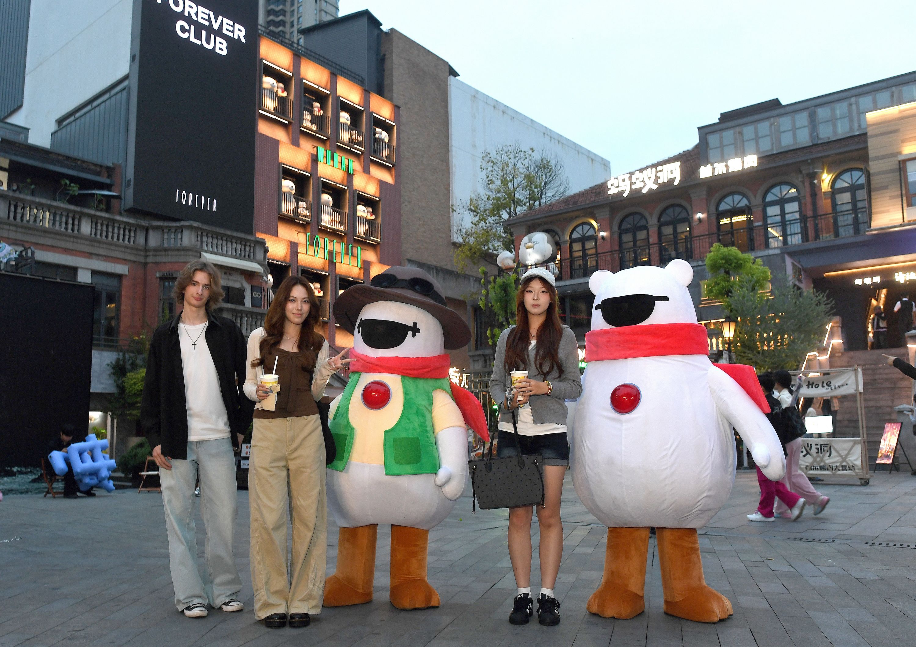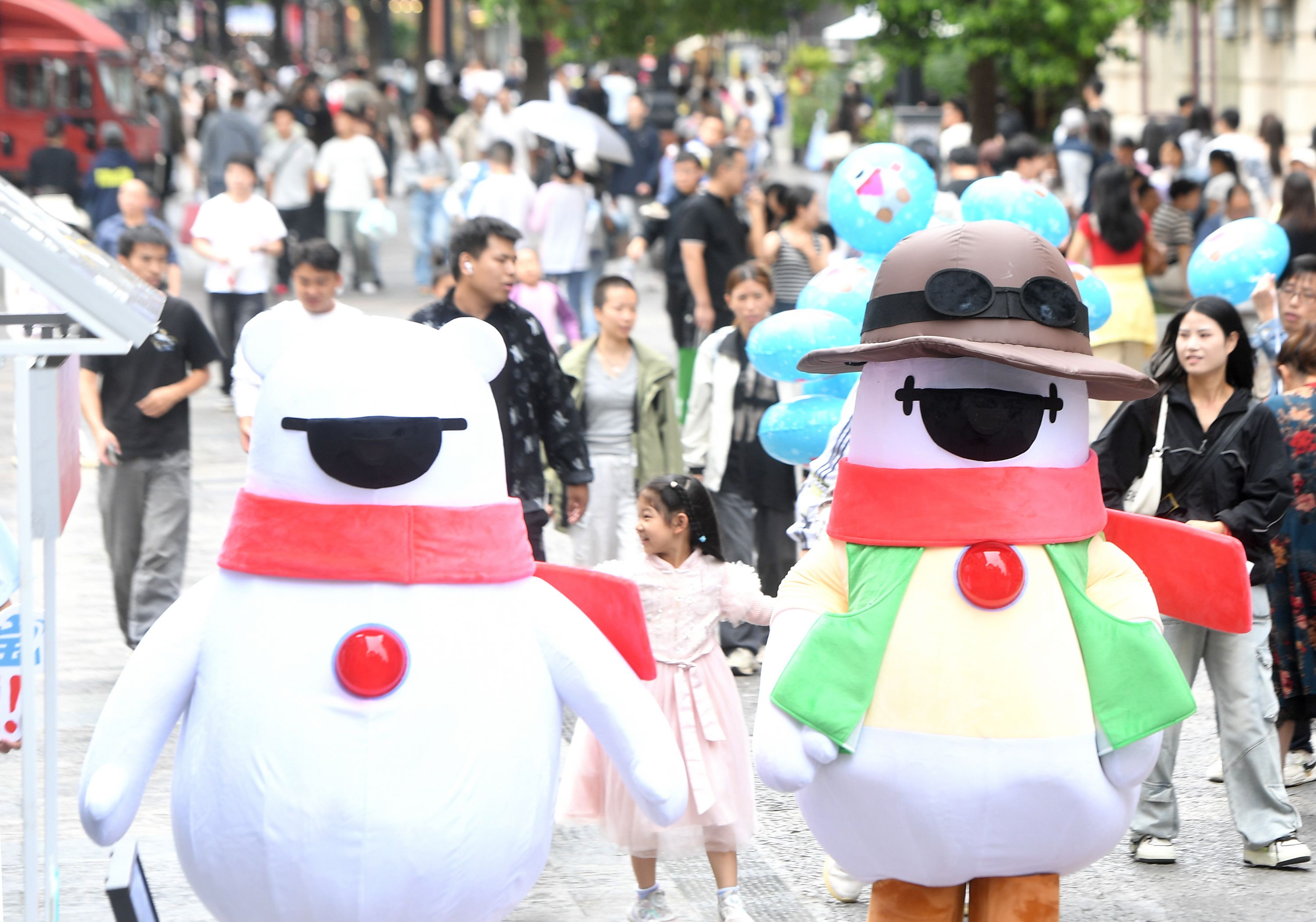 在人气地标巴公房子前,现场气氛达到高潮。市民游客将“雪乐宝”团团围住。“好可爱!”的惊呼声此起彼伏。小朋友们的眼睛紧跟着“雪乐宝”的身影移动,一个个小手伸向可爱的玩偶,期待着拥抱和礼物。