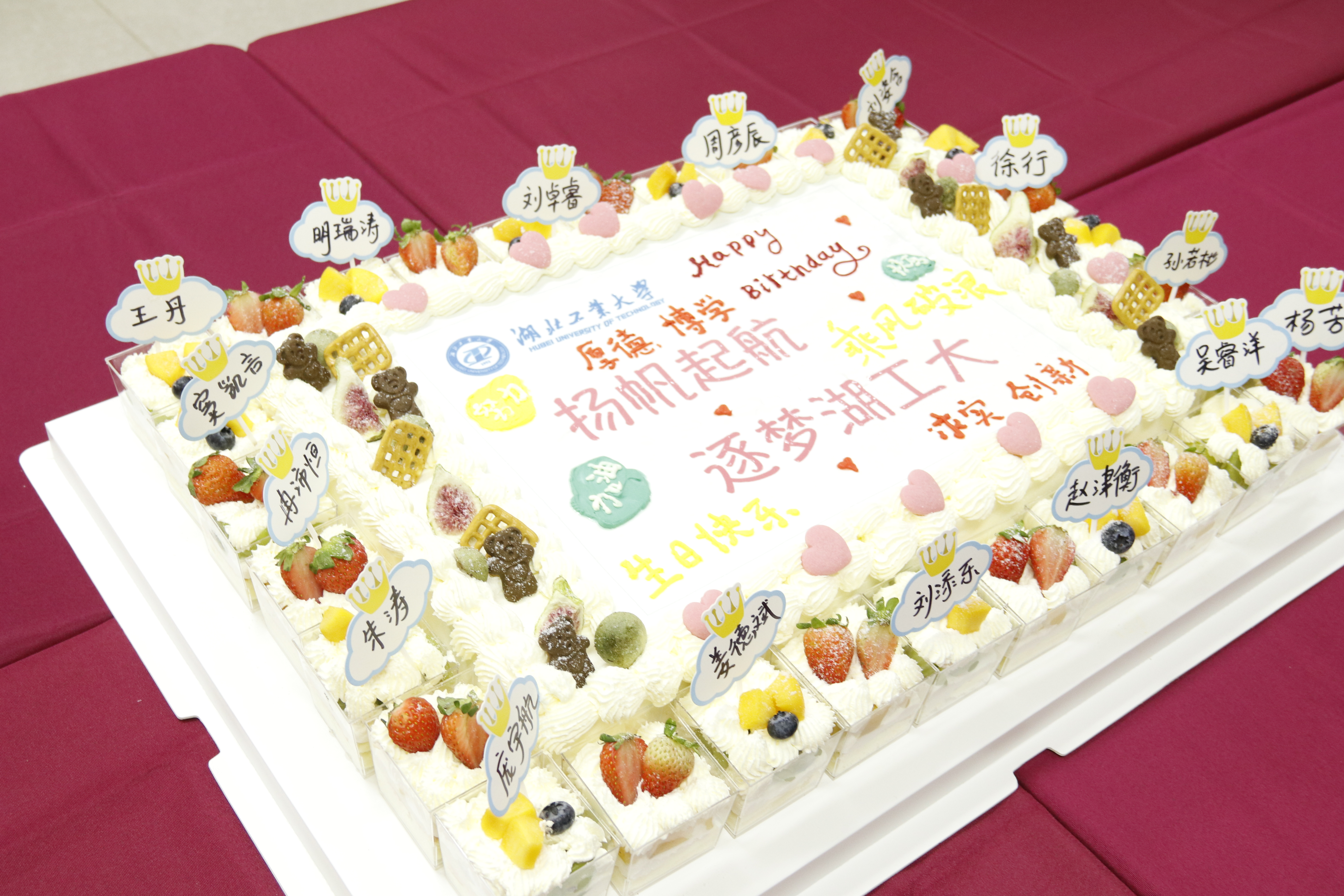 14名新生有来自云南省文山州的刘添乐、贵州省毕节市的王丹、陕西省宝鸡市的刘姿含……生日这天,他们从天南海北来到武汉,相聚在湖北工业大学的校园,共度这样一个特别的生日。
