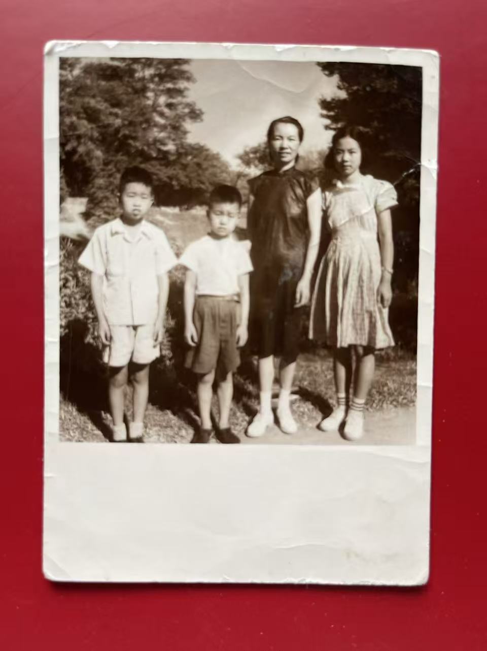 图为1948年夏,顾倬云(右1)与姨母朱枫(右2)在上海。