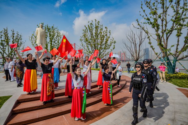 几乎同时,武昌区公安分局紫阳路派出所副所长张小金收到联动指令,携“黄鹤卫士”队员快步赶到现场,耐心向游客说明此时正值长江汛期的隐患,让游客主动退回安全地带。