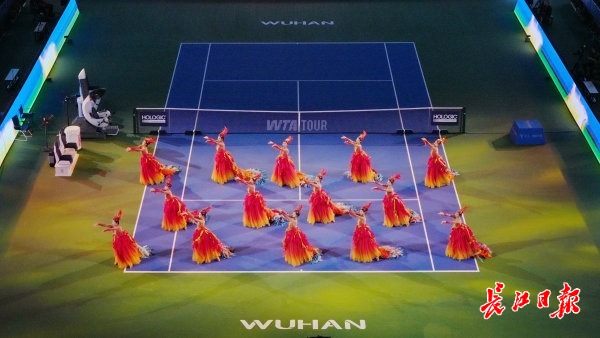 长江日报大武汉客户端10月6日讯(记者张琳)10月6日19时,2025武汉网球公开赛开幕式在光谷国际网球中心举行,黄鹤楼、光谷国际网球中心等地标建筑在LED屏上闪现,《凤舞楚天》舞蹈尽显荆楚文化的灵动。