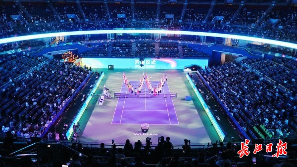 随后,巴黎奥运会网球女单金牌得主郑钦文,世界排名第一、武网三冠王萨巴伦卡等球员和嘉宾一起,手触启动装置,宣告本届武汉网球公开赛开幕。
