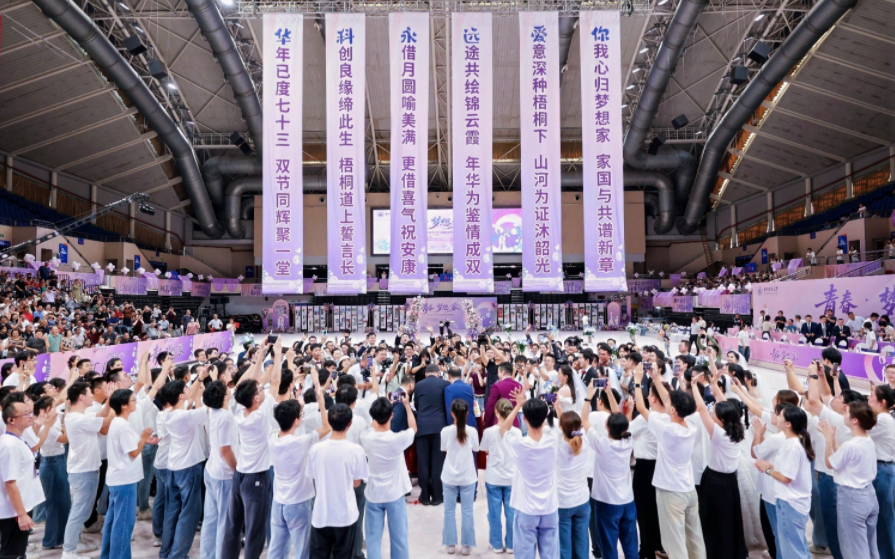 “国庆是国家的生日,校庆是母校的生日,今天也成为我们小家庭诞生的日子。”一位2015届校友新人深情地说道。这句话,道出了在场所有新人的共同心声。那些曾在1037号森林中萌芽的爱意,历经岁月的浇灌,终在母校的见证下开花结果。