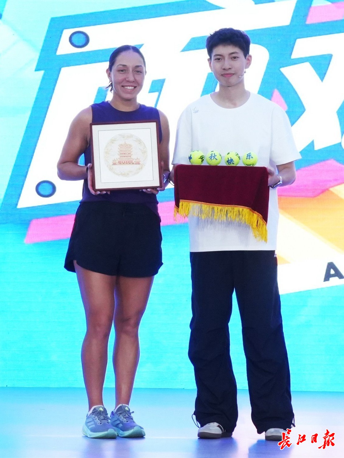10月6日,佩古拉(左)受邀出席2025武汉体育金秋消费季开幕式活动。 记者何晓刚 摄