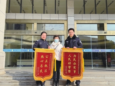 一位市民给庙山派出所送两面锦旗致谢。江夏公安供图