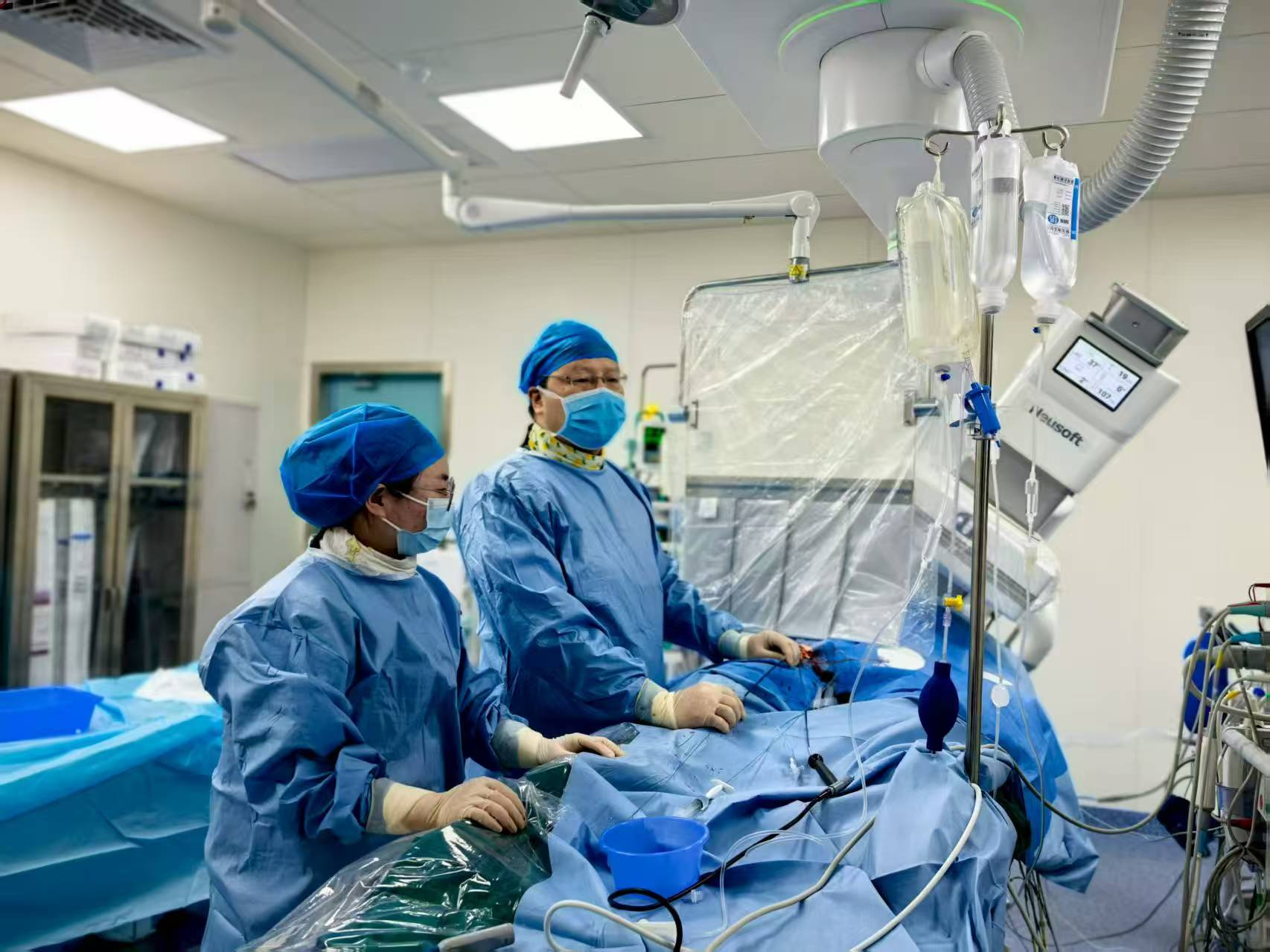 梨园医院心血管临床医学中心张勇华副主任团队正在手术。