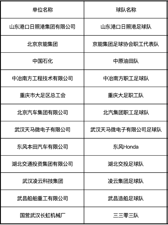 其中,武汉赛区的比赛将于10月16日至24日在武汉三镇足球俱乐部训练基地进行,共有12支球队在汉竞逐绿茵,其中有来自北京、重庆、山东、河南等地的队伍,以及东风honda、湖北交投足球队、凌云集团足球队、武汉天马微电子有限公司足球队等武汉本地的大型国企和民营企业代表队。